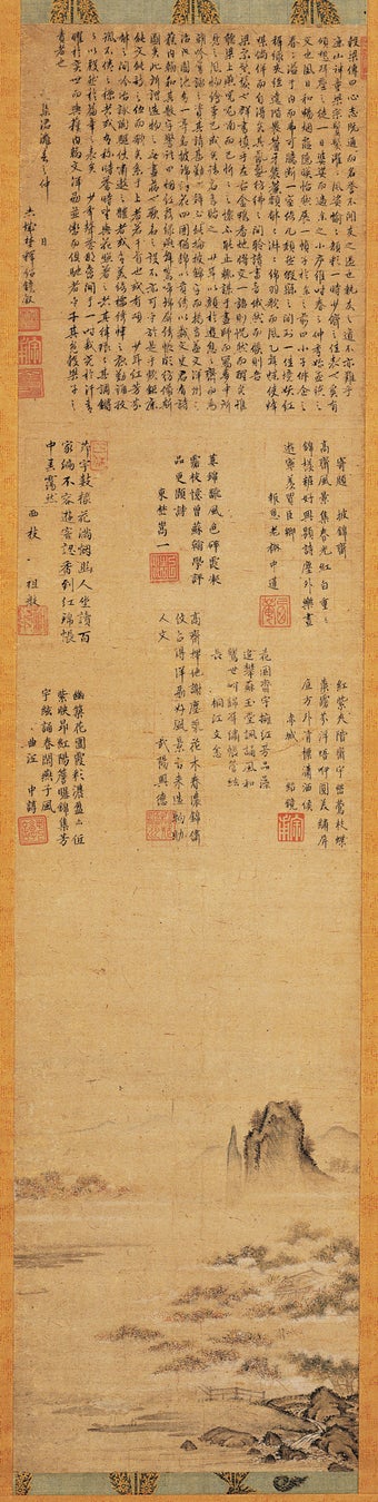 ある人物が鎌倉・円覚寺の少年僧に贈るため、夢に見た美しい書斎の光景を描かせた佳品。今日より遅れて流行した、鎌倉における詩画軸の古例かつ代表作例である。2024年に重要文化財に指定された。