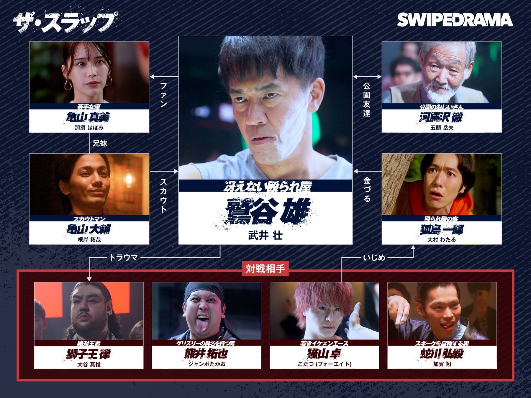 縦型ショートドラマアプリ「SWIPEDRAMA」を運営する株式会社SWIPEDRAMA(本社:東京都渋谷区、代表取締役:大田卓矢)は、世界的に注目されている新競技「パワースラップ」を題材にした新作ショートドラマ『ザ・スラップ』を5月30日(金)にリリースすることを発表しました。主演の武井壮が、45歳の殴られ屋 鷲谷 雄(わしたに ゆう)を演じ、人生再起を懸けて過酷な競技へ挑む姿を描いた格闘エンターテインメントです。武井壮をはじめとした話題のキャストが多数集結した本作は、縦型ショートドラマアプリSWIPEDRAMAにて独占配信いたします。