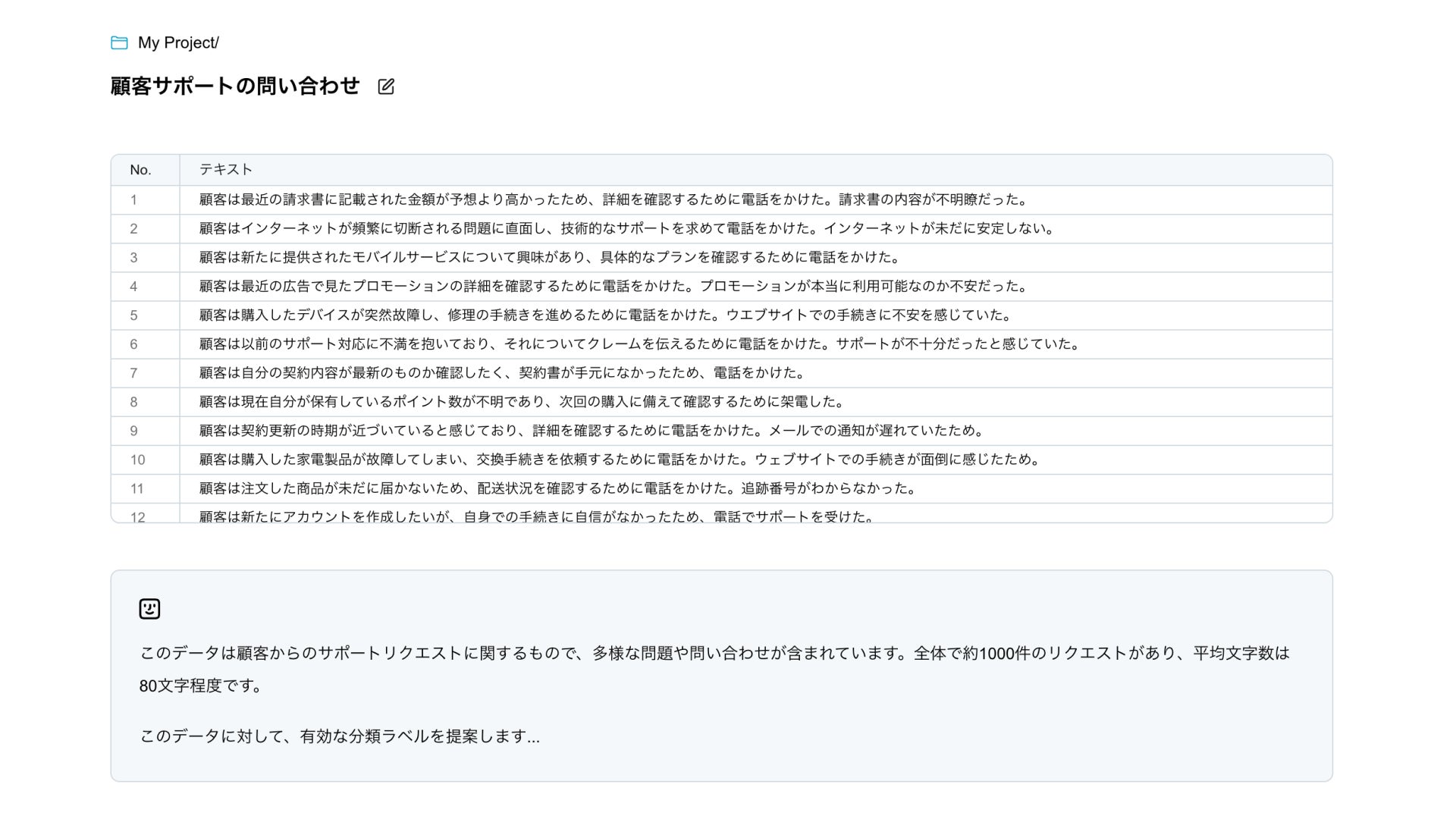 テキストの意味合いを深く理解した上でAIが分類ラベルを提案します。