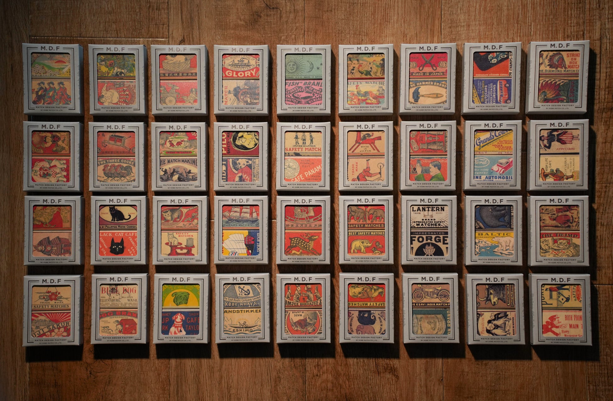 6月3日(火)より、公式オンラインストアにて発売を開始いたします。並型マッチとは、かつてどの家庭にも常備されていた、マッチが約40本入ったお馴染みの小箱です。今回、全72柄を復刻した中から柄違いの2個組にし、M.D.Fオリジナルの化粧箱に入れてお届けします。お香・キャンドルの着火具や、アウトドア用品、防災アイテムなどにお役立ていただくほか、コレクションとしてもお楽しみください。