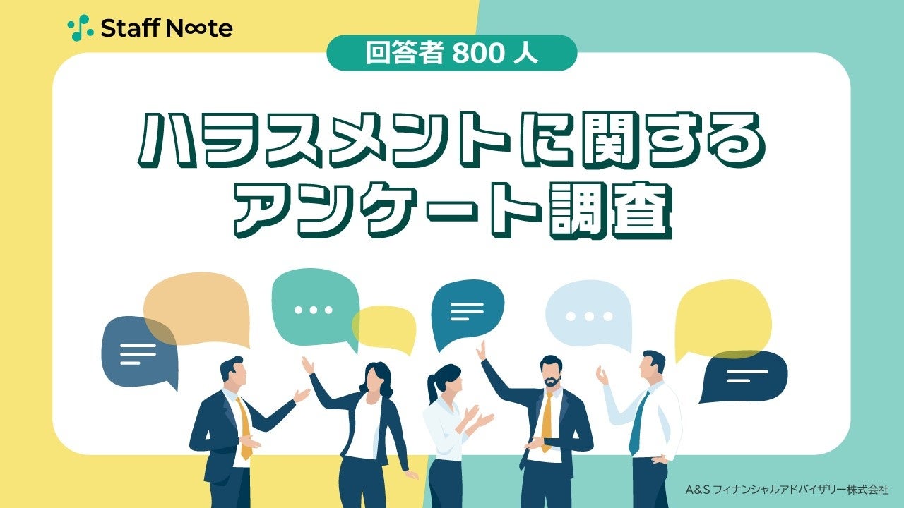 企業の組織・財務関連のコンサルティングを行う A&Sフィナンシャルアドバイザリー株式会社(本社:東京都千代田区、代表取締役:八木裕男)は、このたび「職場のハラスメントに関するアンケート調査」を実施しました。