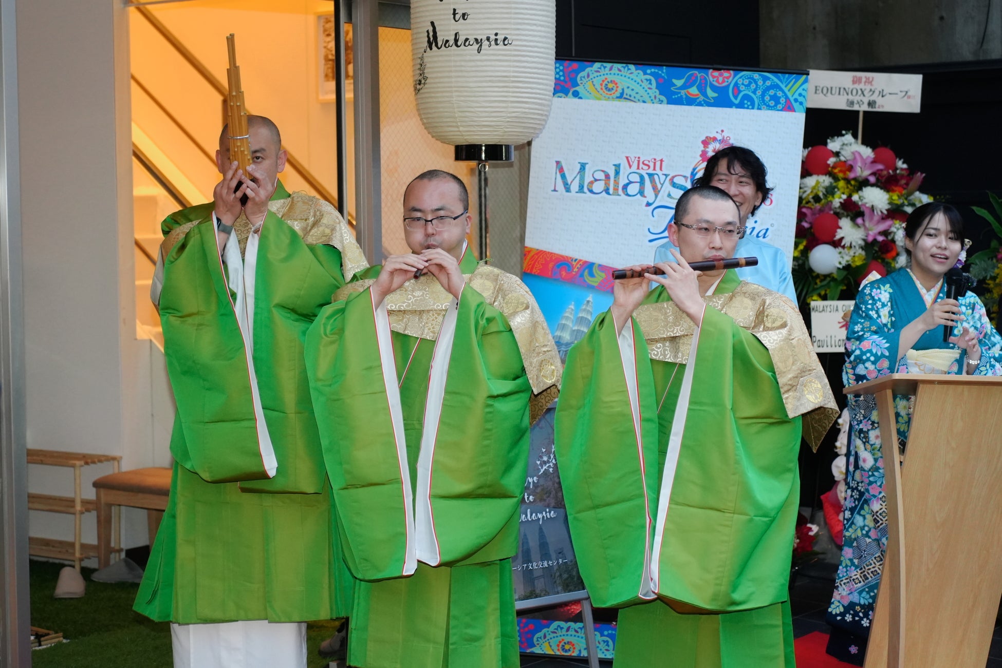 日本の伝統音楽「雅楽」 の生演奏が行われ、春の京都の雰囲気を一層引き立てました。訪れた観客は、歴史ある音色とマレーシアの文化が織り成す幻想的な空間を堪能しました。