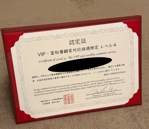 一般社団法人日本執事協会(代表理事:新井直之)は、株式会社フェアフィールド及び株式会社エフ・フォースのスタッフを対象に、VIP・富裕層顧客対応に特化したVIP・富裕層顧客対応接遇検定を実施いたしました。 本検定試験においては、受験者のうち12名が合格し、その中でも4名が高難易度であるレベル4認定を取得いたしました。