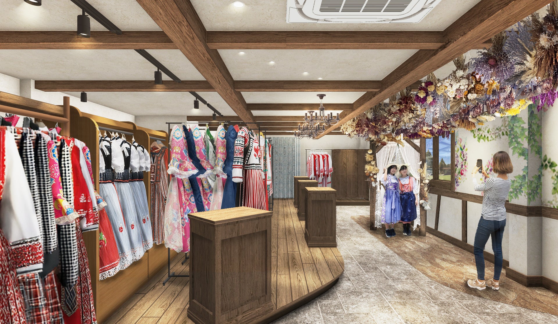 当館初となる民族衣装体験専用店舗として、ヨーロッパ各地の民族衣装を取り揃えた店舗がオープンします。