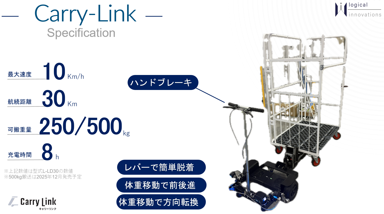 ロジカルイノベーションズは、「人に寄り添うテクノロジーで現場をラクに」をミッションに掲げています。今回の地域別パートナーシップの構築により、日本全国のあらゆる現場で「スマートキャリー」「キャリーリンク」が当たり前に存在する環境を作り出し、現場の生産性向上とDX化を牽引してまいります。また、提携2社と協力し、既存製品の電動化を推し進め、更なる高付加価値の製品を創出してまいります。