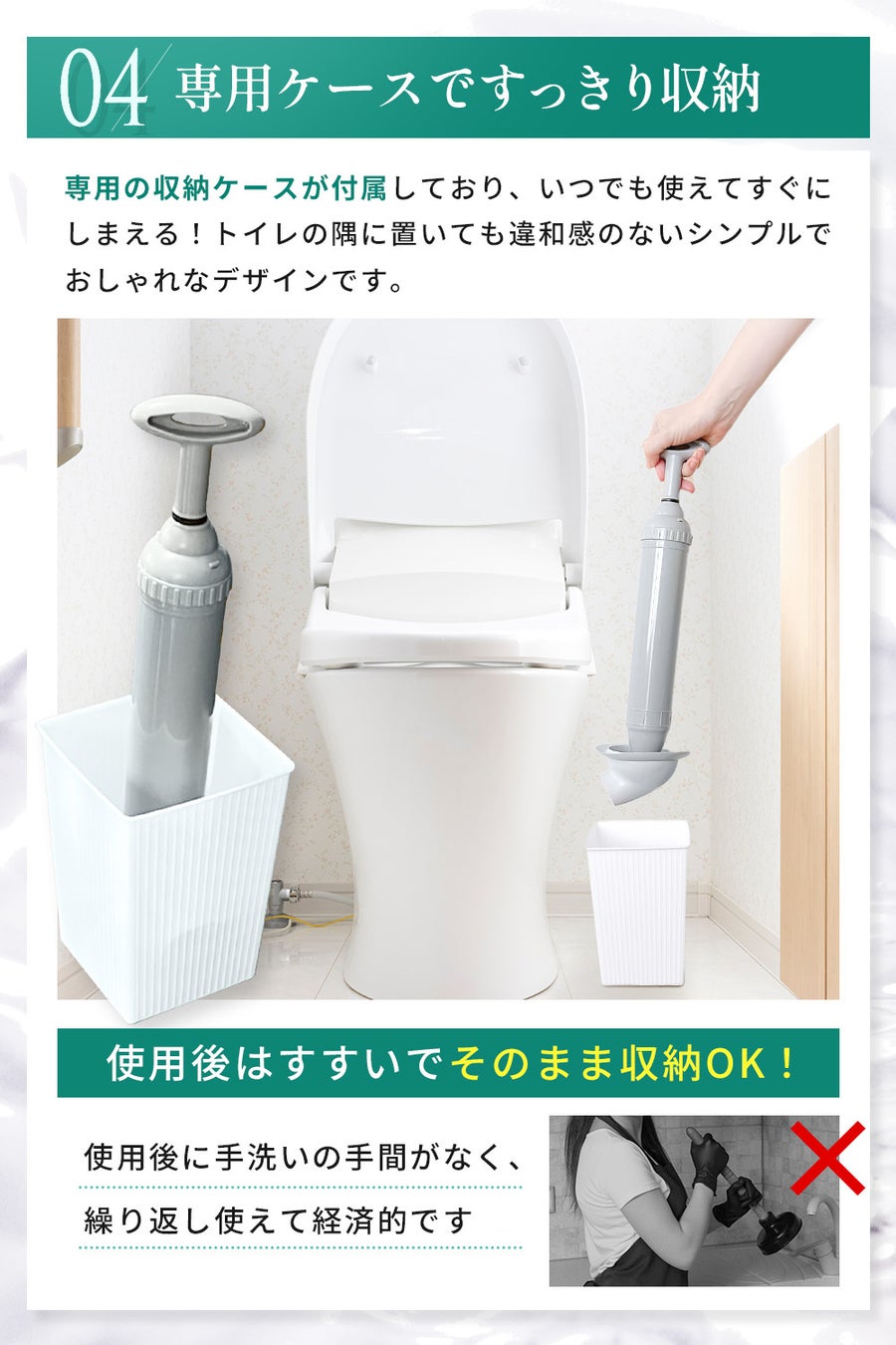 【次世代型すっぽん】真空式ラバーカップ!誰でも簡単強力ポンプで詰まりを解消、専用ケース付きでスッキリ収納。