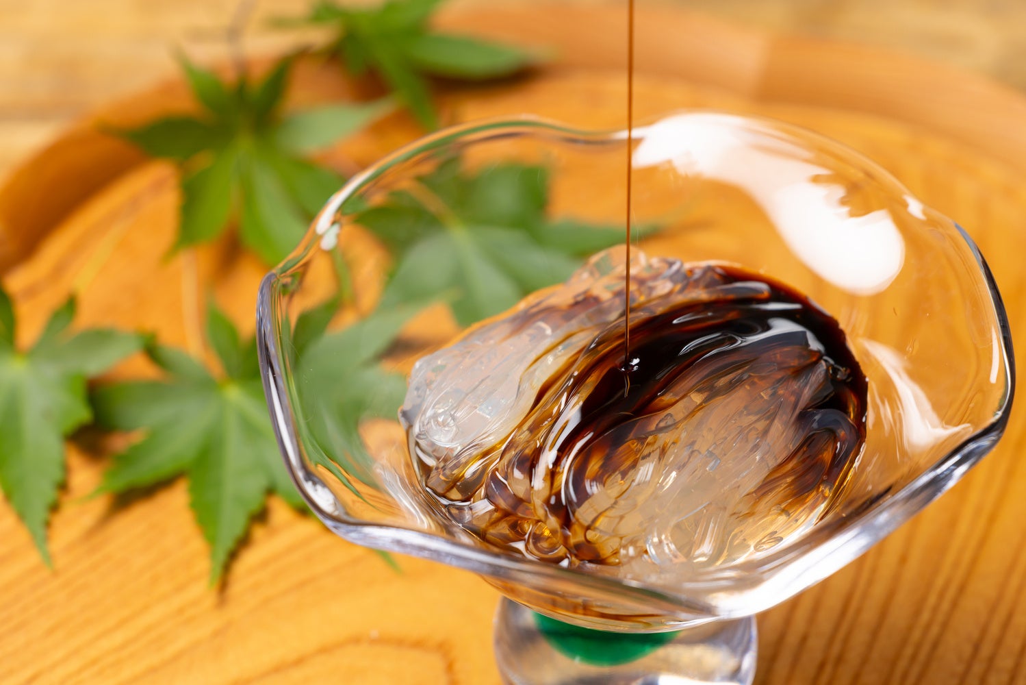 ところてんの保存水には、特別栽培米から作られた純米酢を使用し、雑味のないすっきりとした味わいを実現しました。また、添付のタレも素材にこだわり、沖縄県産サトウキビの黒糖を使用した黒糖みつや、有機米酢・木桶仕込みの醤油を使用した三杯酢をご用意。ところてん本来の風味を引き立てる味わいに仕上げています。