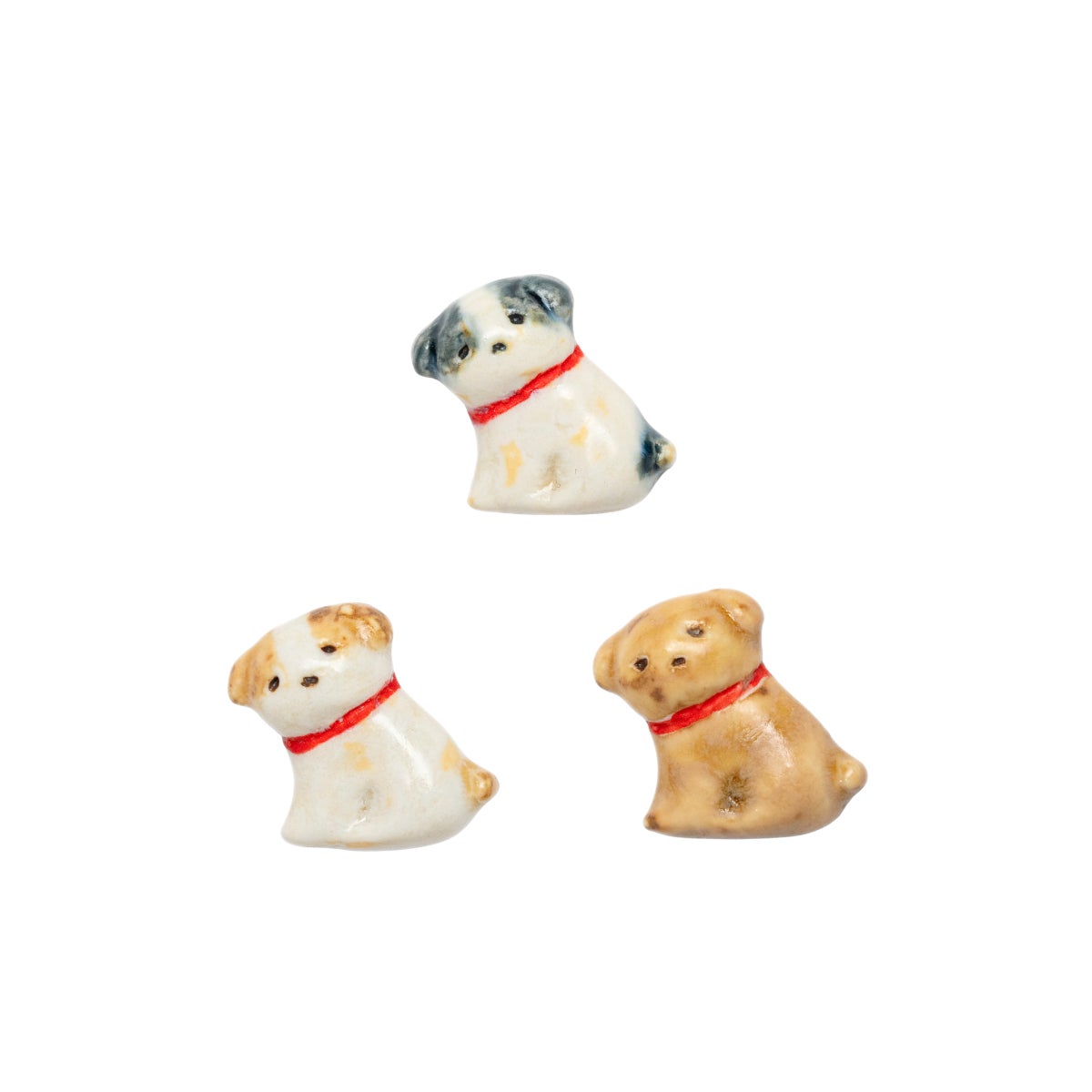ちょこんと座ってこちらを見つめるつぶらな瞳。やきものの温もりをまとい、ほっこりとした子犬が生まれました。釉薬の風合いが、それぞれの個性に。身に着ければ、今日一日がちょっと優しくなるはず。