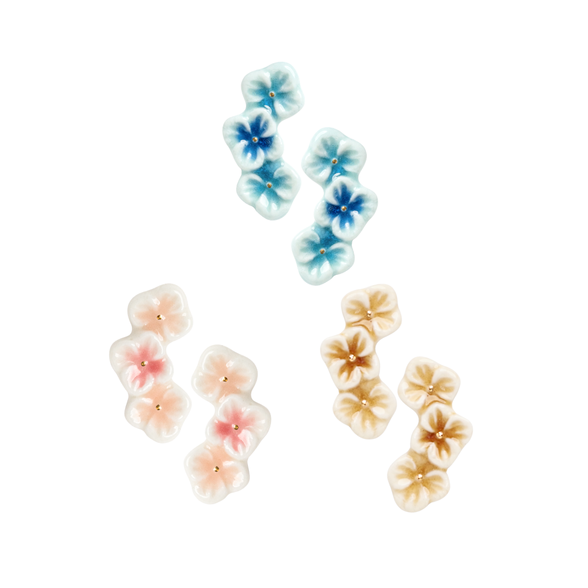 ピアス・イヤリング3種、ブロ ーチ・ピンバッチ3種の計6種類を販売します。