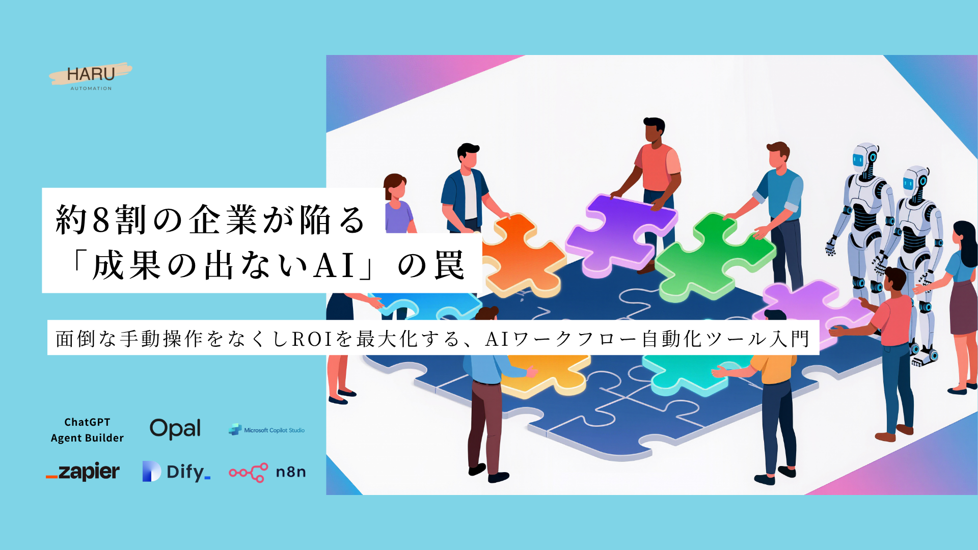 AIと各種自動化ツールを組み合わせ、人の手で行っていた業務の自動化を支援するHaru Automationを提供する株式会社Haru(本社:東京都港区、代表:尾形拓海)は、「面倒な手動操作をなくしROIを最大化する、AIワークフロー自動化ツール入門」を題材としたホワイトペーパーを本日、無料公開しました。
