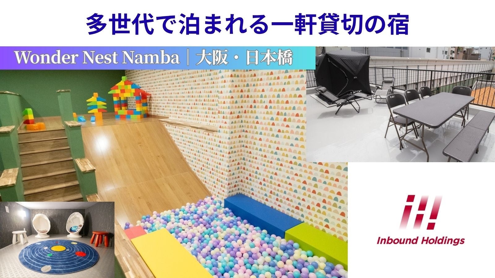 訪日観光客向けサービスやホテルや民泊の管理・運営などを手掛ける株式会社インバウンドホールディングス(本社:大阪市西区、代表:坂本 正樹)は、大阪の難波・日本橋エリアにある築60年の空き家をリノベーションし、子どもから大人まで多世代で楽しめる1棟貸し宿「Wonder Nest Namba(ワンダー ネスト ナンバ)」の運用を開始します。