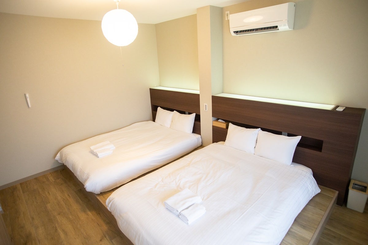 客室にはダブルベッド2台の寝室が2部屋あり、最大8名まで宿泊可能です。家族やグループでの旅行、長期滞在など、多彩な利用シーンを想定しています。