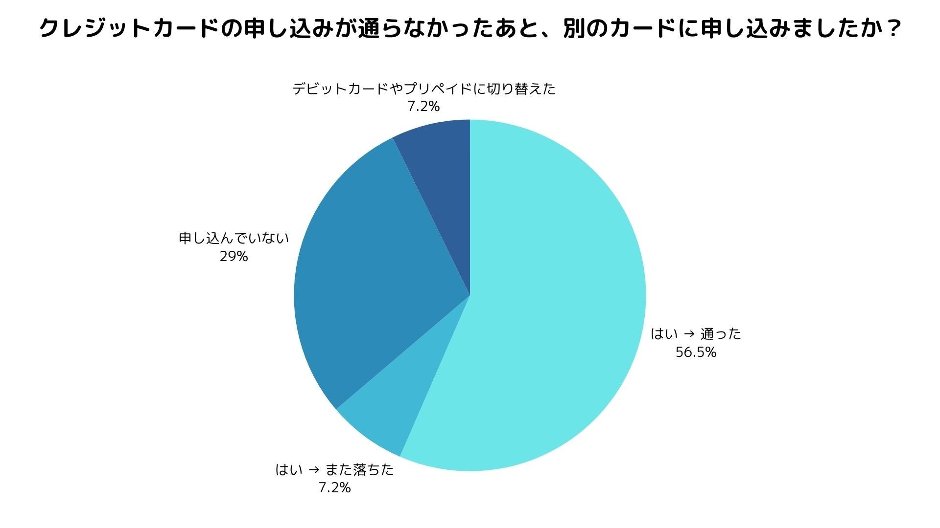 さらに、通らなかったあとに「別のカードでうまくいった」と答えた人が56.5%にのぼり、カードの選び方や申込み方法によって結果が変わる実態が浮き彫りとなりました。