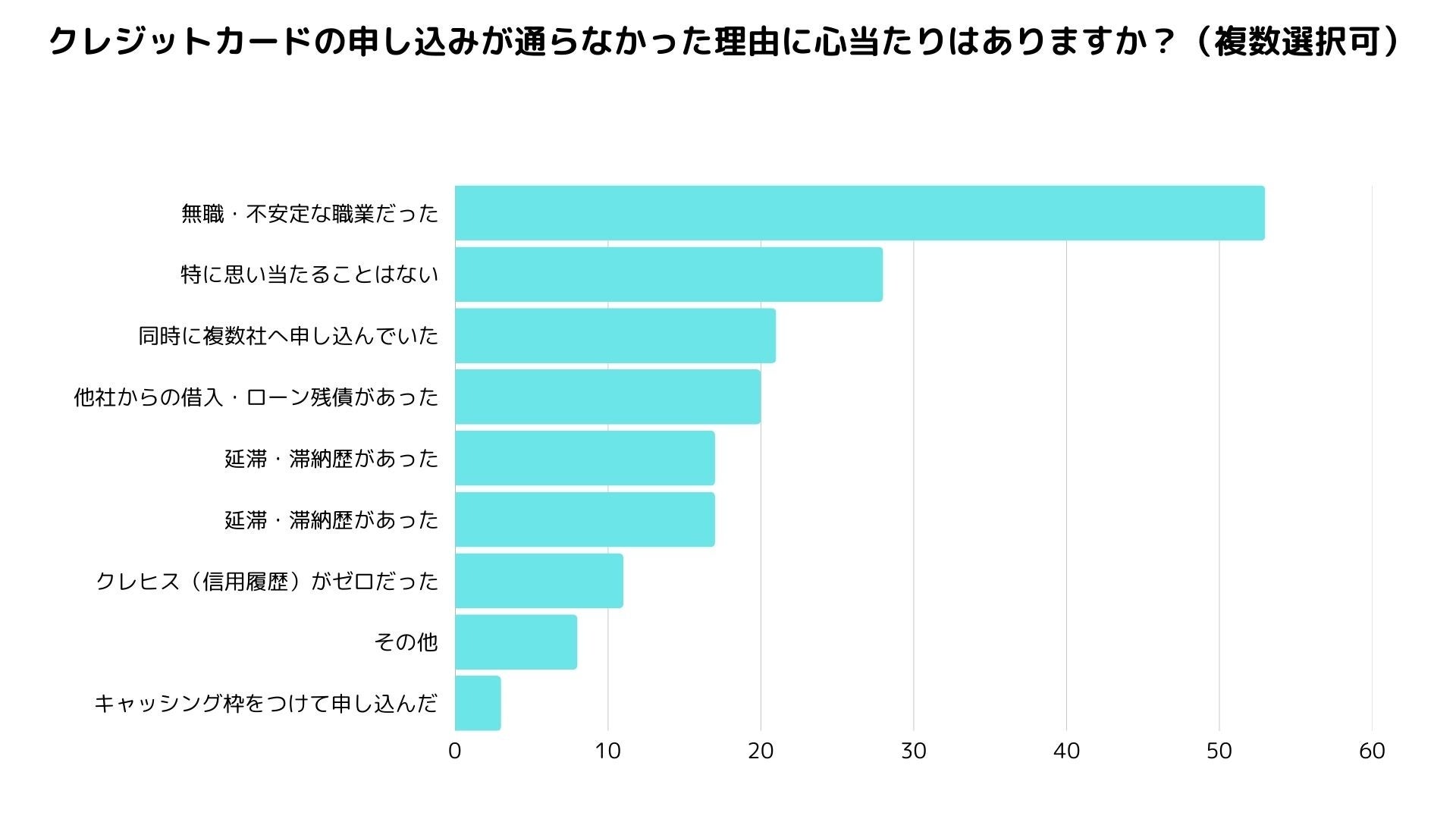「過去にクレジットの利用履歴がなかった」も挙げられ、信用情報に関連する内容が上位を占めています。
