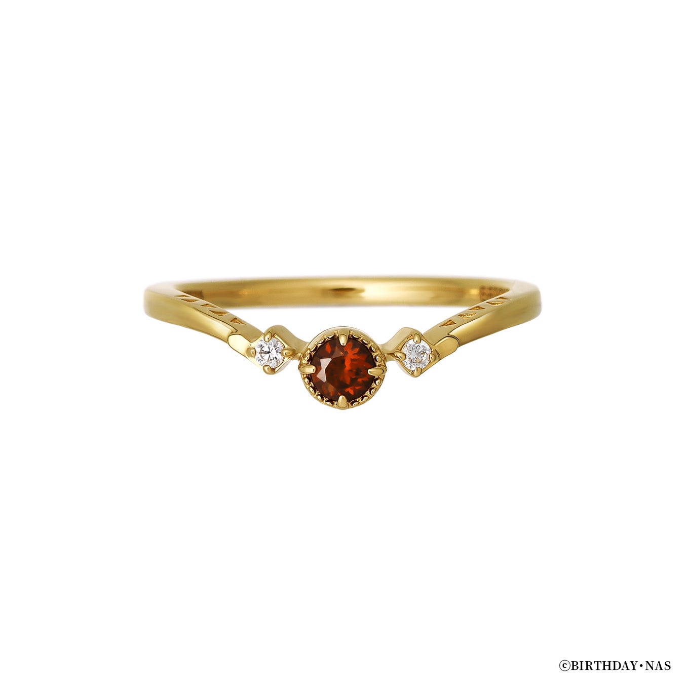 明るく元気いっぱいなファインの赤い髪をイメージし、鮮やかなガーネットをセッティング。