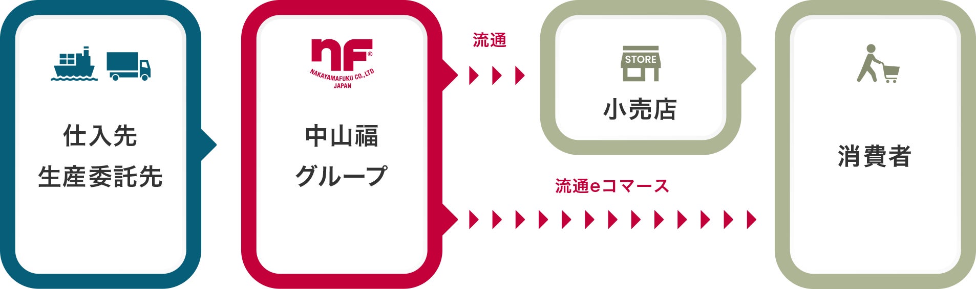 中山福および中山福グループは、中期経営計画NFG2026 の区切りである102年目の歩みを新たな原点と捉え、より多くの生活者・取引先・社会に必要とされる存在を目指してまいります。