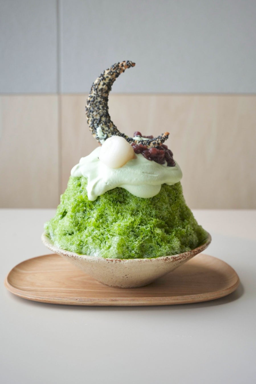 老舗茶問屋「北川半兵衛商店」の上質な抹茶を、ご注文ごとに丁寧に点てて贅沢に使用。中には濃厚なチーズムースを絞り込み、トップには自家製の抹茶クリームと、丁寧に炊き上げた小豆をトッピング。さらに、もっちりとした白玉を添え、かき氷でありながらも抹茶の奥深い香りと味わいを五感で楽しめる一品に仕上げました。