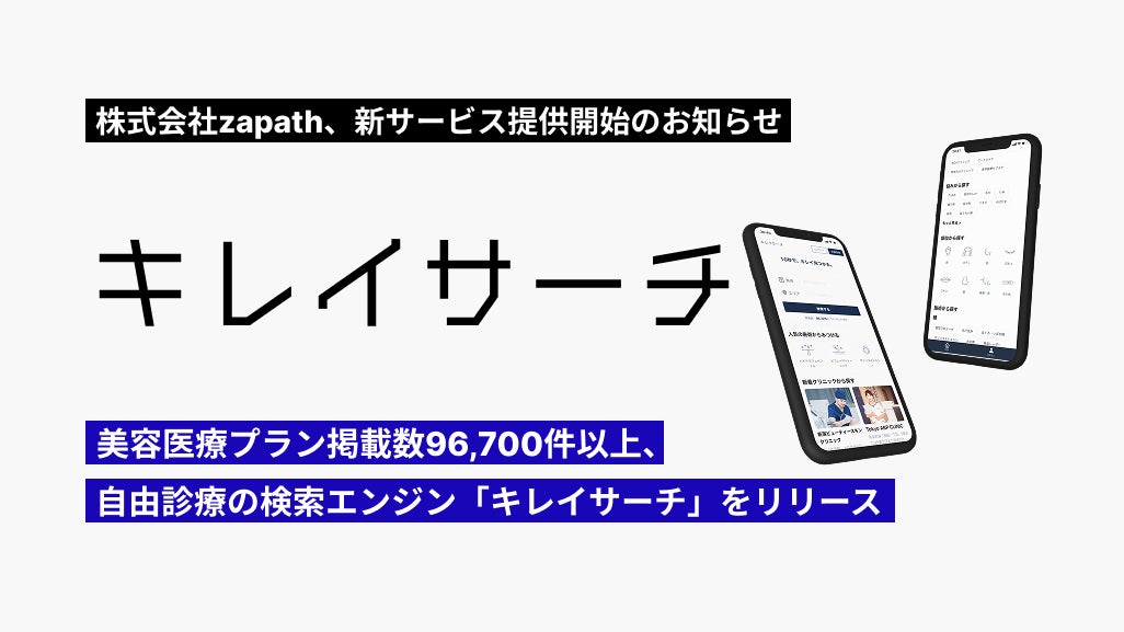 自由診療クリニックに特化した業界支援サービスを展開する株式会社zapath(本社:東京都渋谷区、代表取締役:四戸淳弘)は、美容医療を中心とした自由診療サービスを一括で検索・比較できる検索エンジン「キレイサーチ」を提供開始いたしましたので、お知らせいたします。