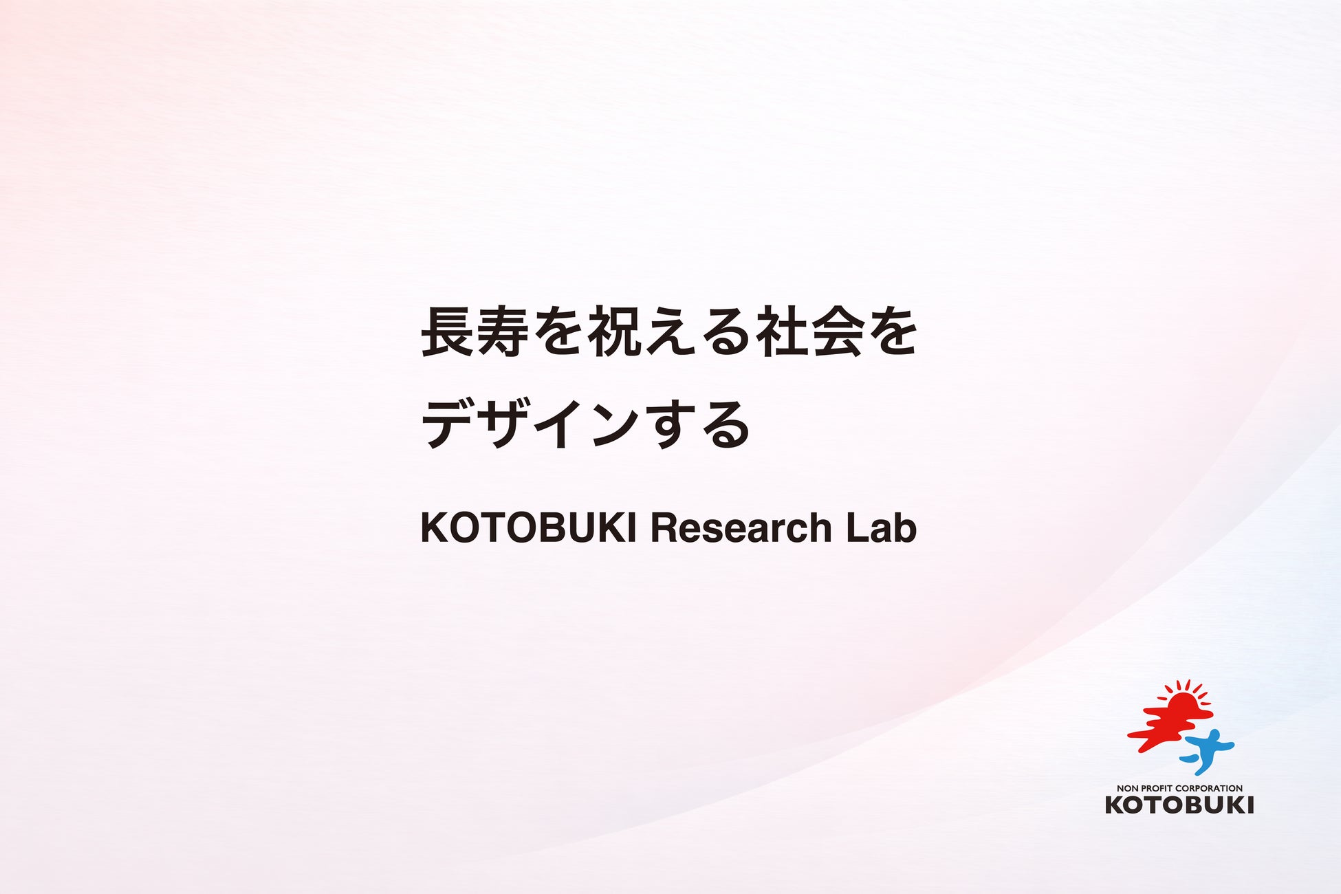 社名であるKOTOBUKI(寿)に込めた「長寿を心から祝える社会」という想いのもと、その実現に向けて、「KOTOBUKI Research Lab」を立ち上げます。