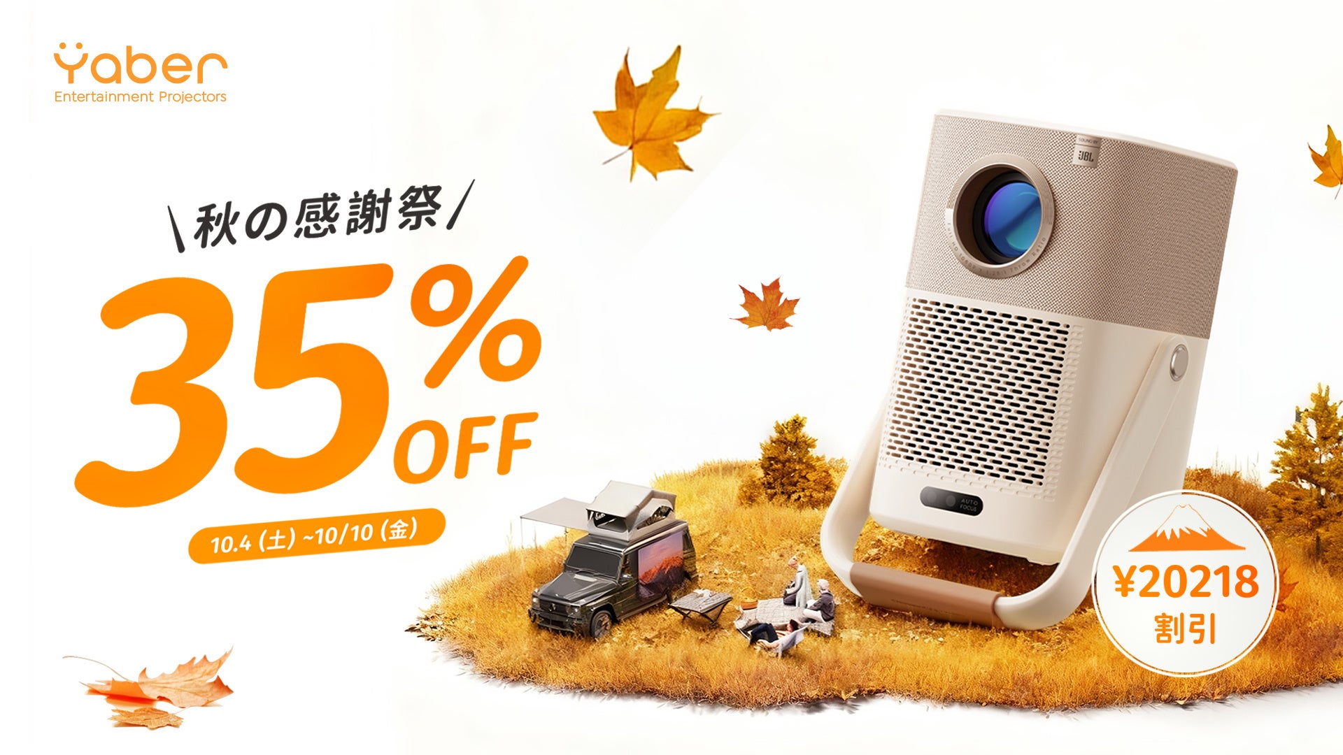エンターテインメントプロジェクターのパイオニアであるYaber(ヤバー)は、Amazon.co.jpで開催される「プライム感謝祭」に参加し、人気ポータブルプロジェクター T2 Plus を特別価格で提供いたします。期間中は、通常価格¥57,210(税込)のところ、¥36,992(税込)と約35%OFFで購入可能。この秋、ご家庭でもアウトドアでも、手軽にプレミアムな大画面体験をお楽しみいただけます。