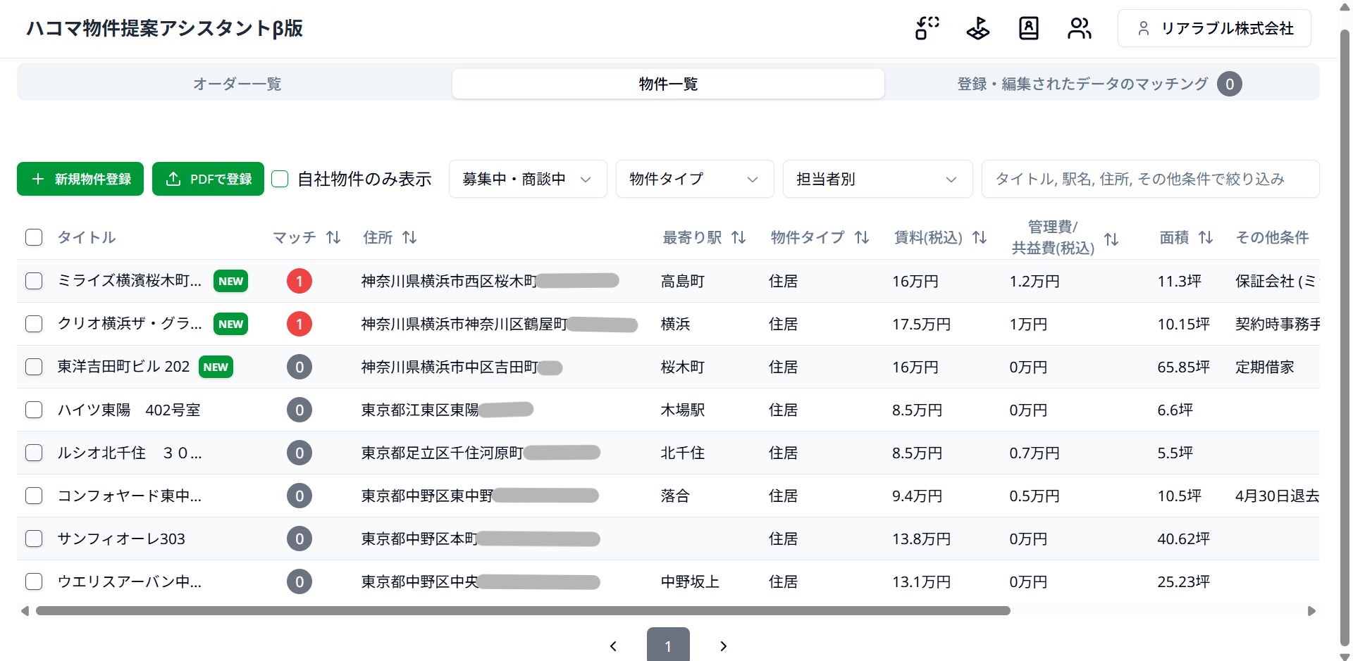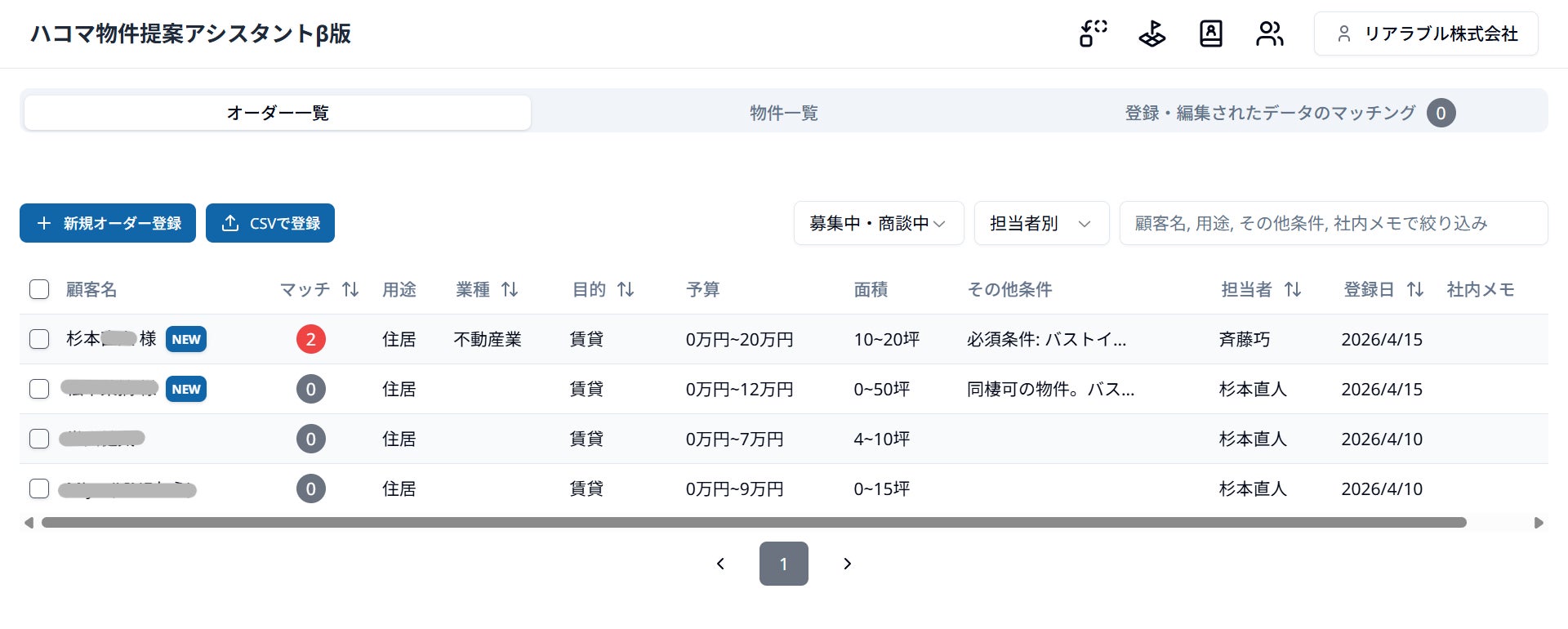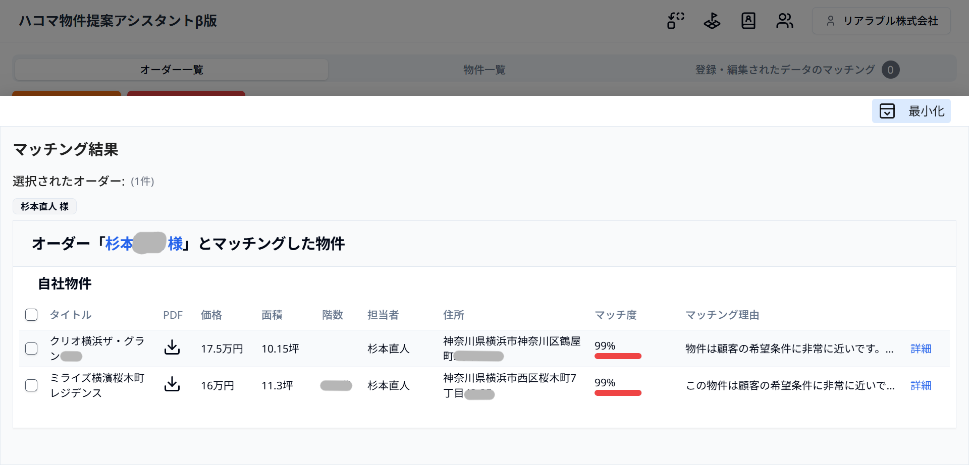 ■ オーダーと物件のマッチング自動提案