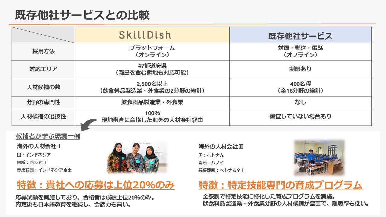 食品業界専門の外国人材採用プラットフォーム『SkillDish』:https://skilldish.com/
