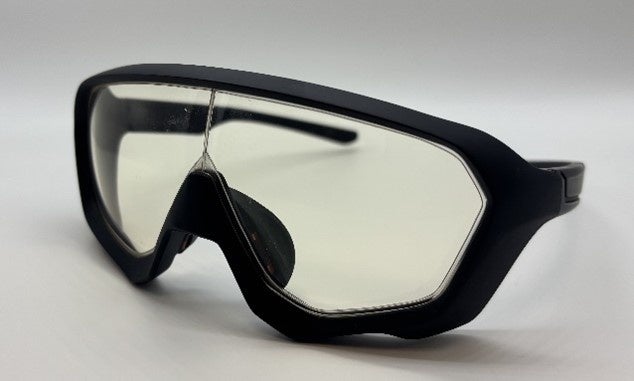 モデルNO.P601 鯖江市のサングラスデザイナーによる放射線防護メガネ専用設計。付属のインナーフレーム使用することで遠近両用も含む度付対応が可能 |