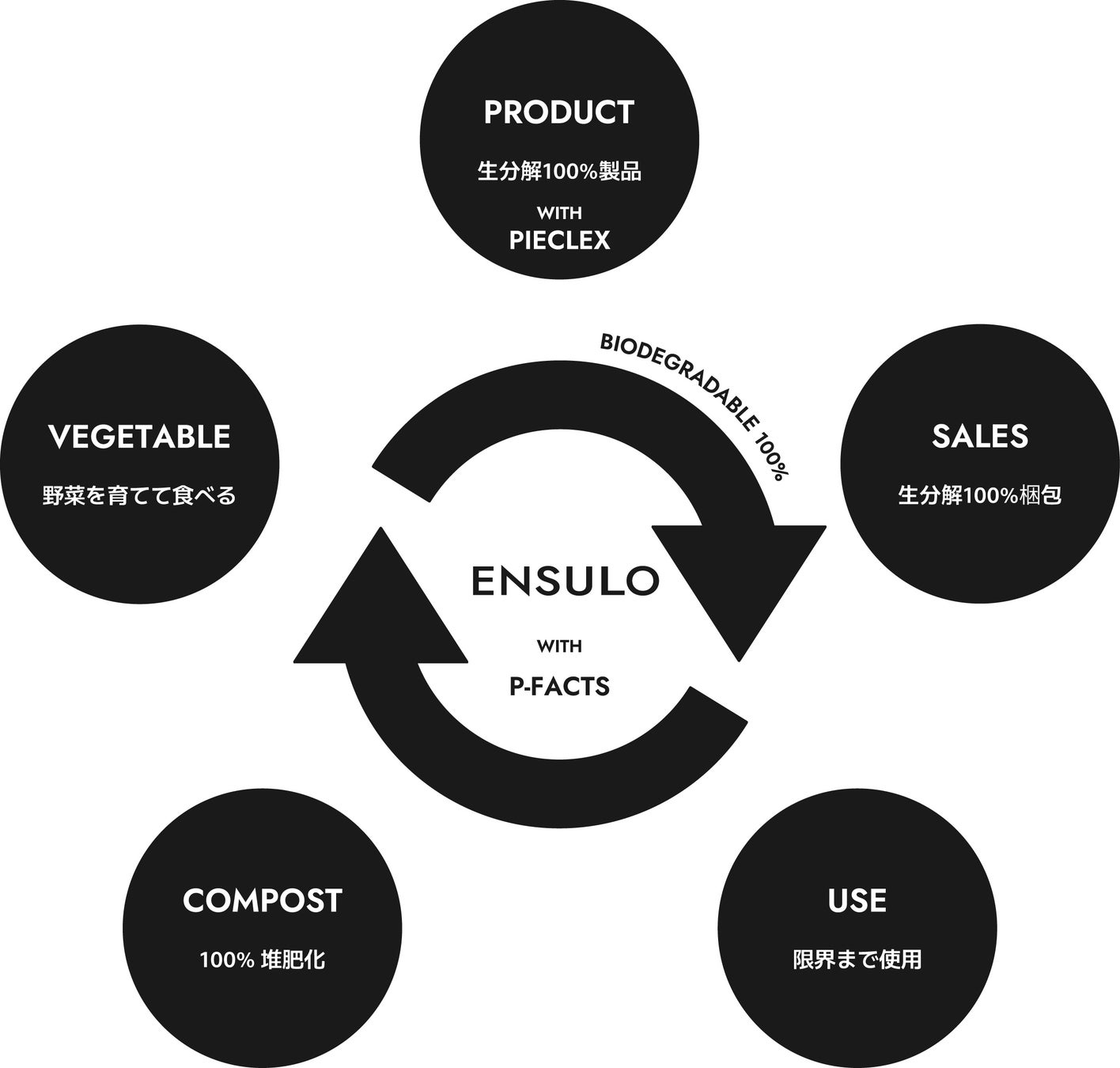 ENSULOは、衣服を「ただ身にまとうもの」ではなく、「循環をデザインするもの」として捉えています。着古した製品を堆肥化し、土へと還すことで、新たな命を育む未来へとつなげていきます。