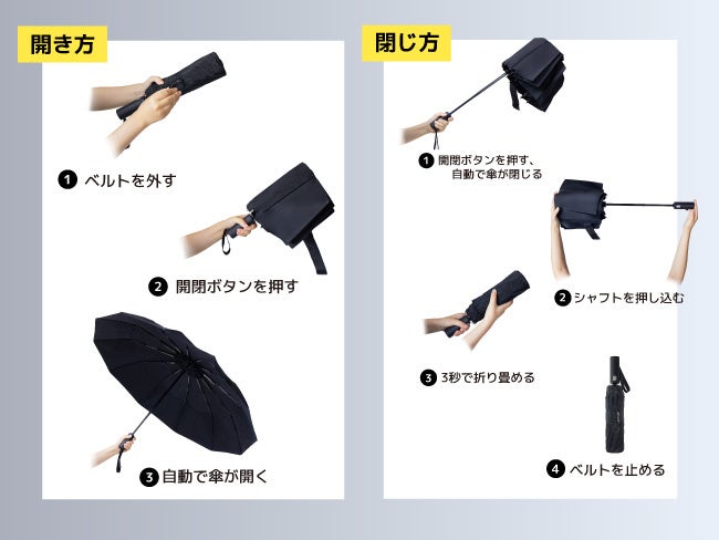 ✅ 誰でも簡単、手間なしにたためる折りたたみ傘