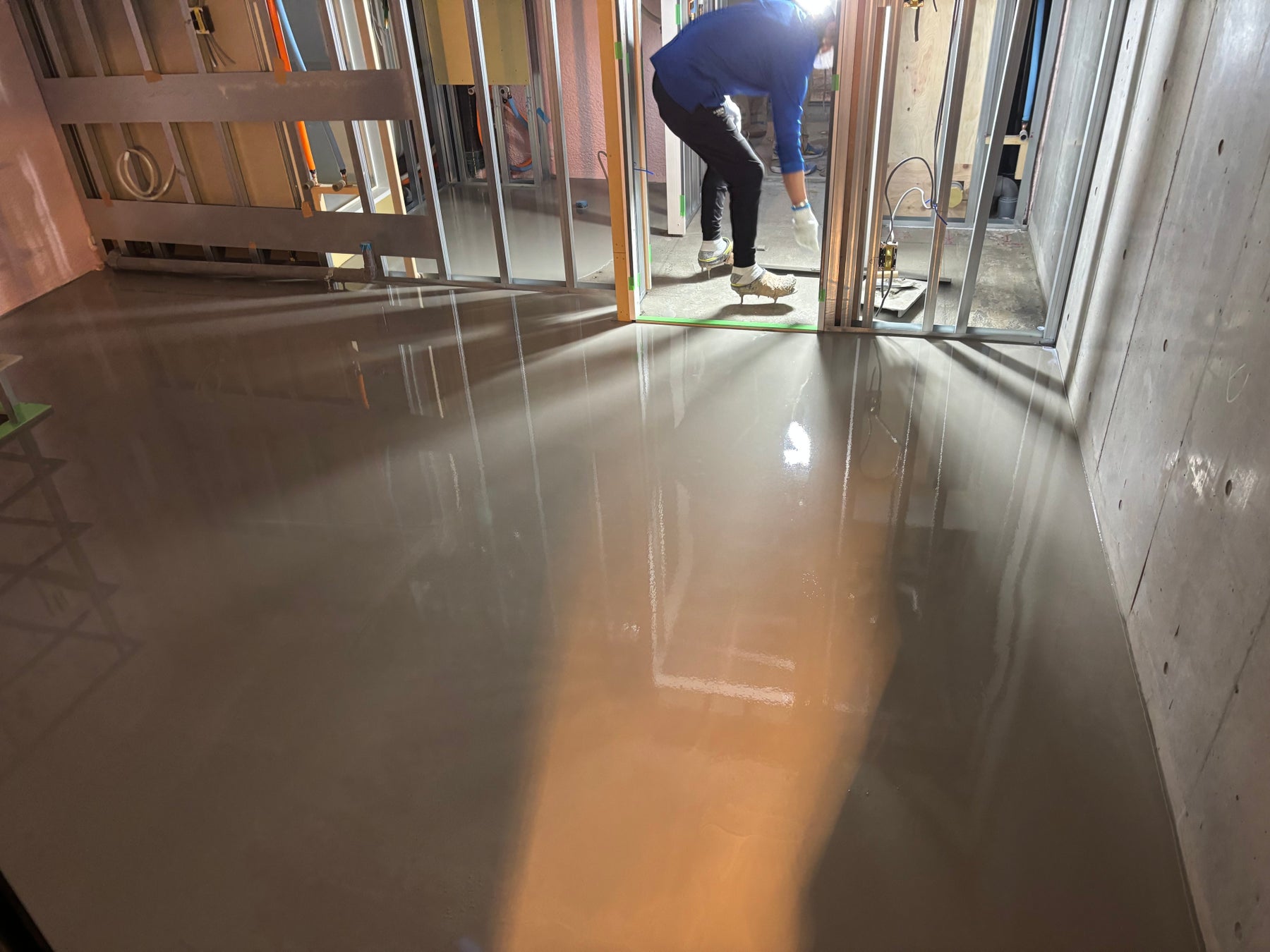 本製品の開発においては幅広い施工厚に対応出来るように、製品のフレッシュ性状および硬化物性のバランス調整に非常に苦労致しました。また、広い面積で使用されるケースの多いSL材ですので、仕上りの色調安定性の確保にも取組んだ製品となっております。本製品をご使用になる職人さんが、作業負担が少しでも減ったと感じて頂ける様な製品となっていたら幸いです。
