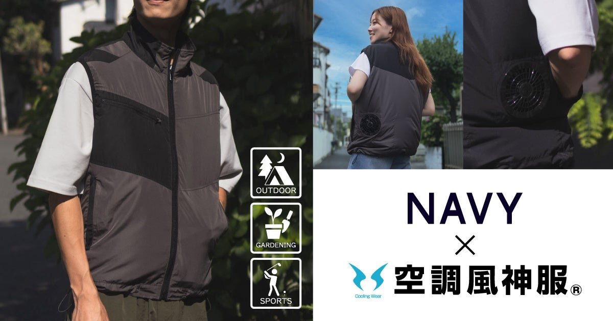 「ワークウェアで培われた暑熱対策商品を、より多くのお客様に着用してもらいたい。ファン付きウェア=ワークウェア(作業服)という概念を超えたい」というコンセプトのもと、コラボレーションが実現。ワークシーンのみならず、スタンダードウェアとしても着用できるよう、「NAVY」ブランドの良さである「シンプルで飽きのこないデザイン」に機能性をプラスし、シーンを選ばず毎日着たくなる商品に仕上がっています。