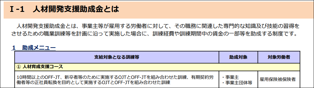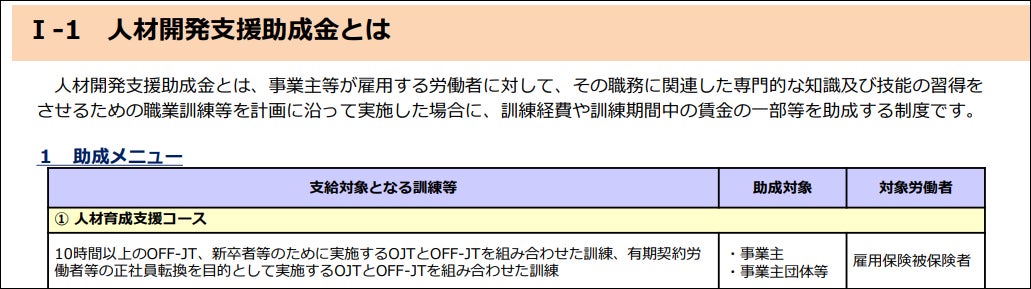 人材開発支援助成金「①人材育成支援コース」
