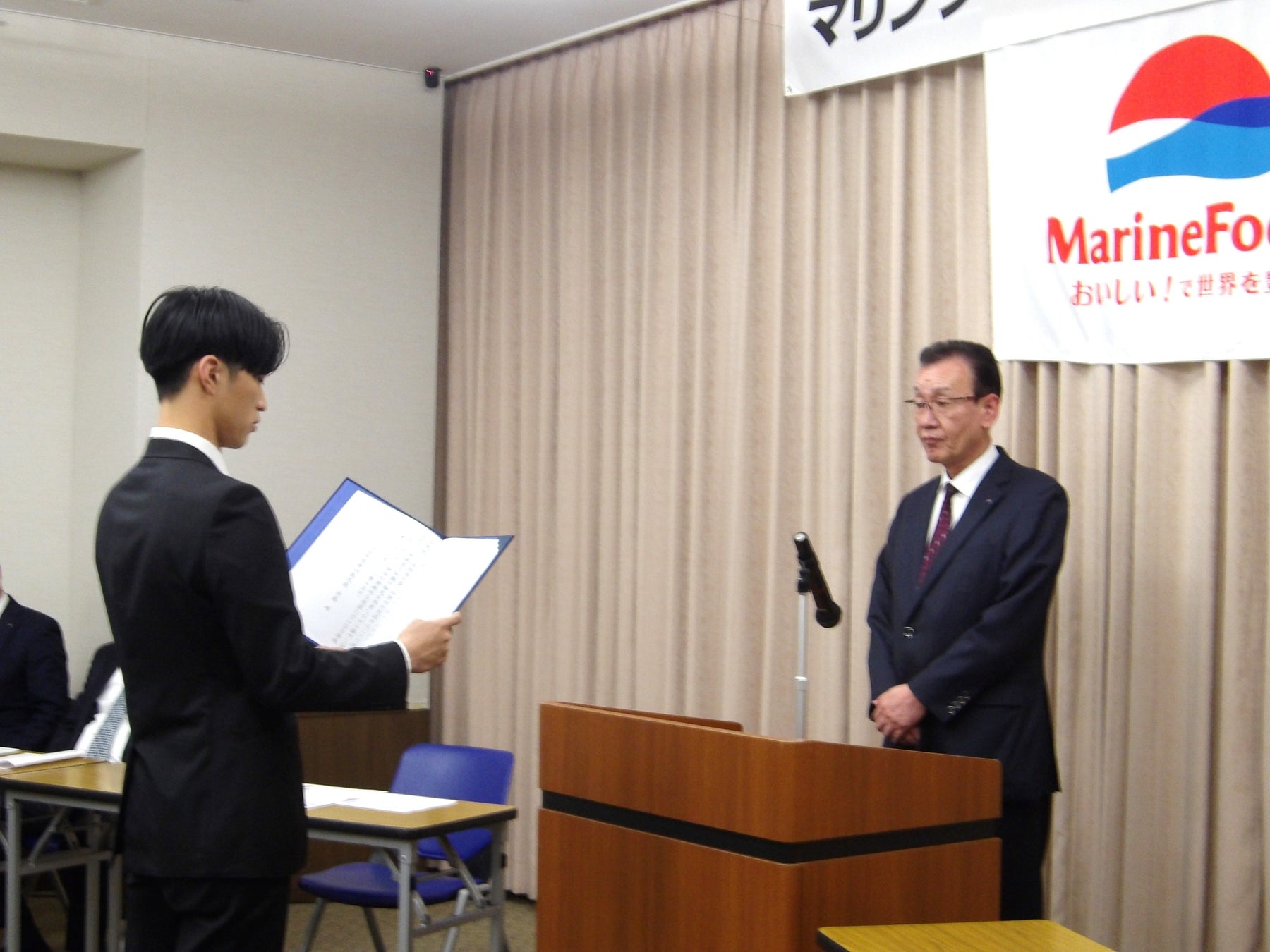 新入社員一同、誠意をもって業務に取り組み、より専門的な知識とスキルを身に付けながら、マリンフーズの更なる発展に貢献できるよう努めて参ります。