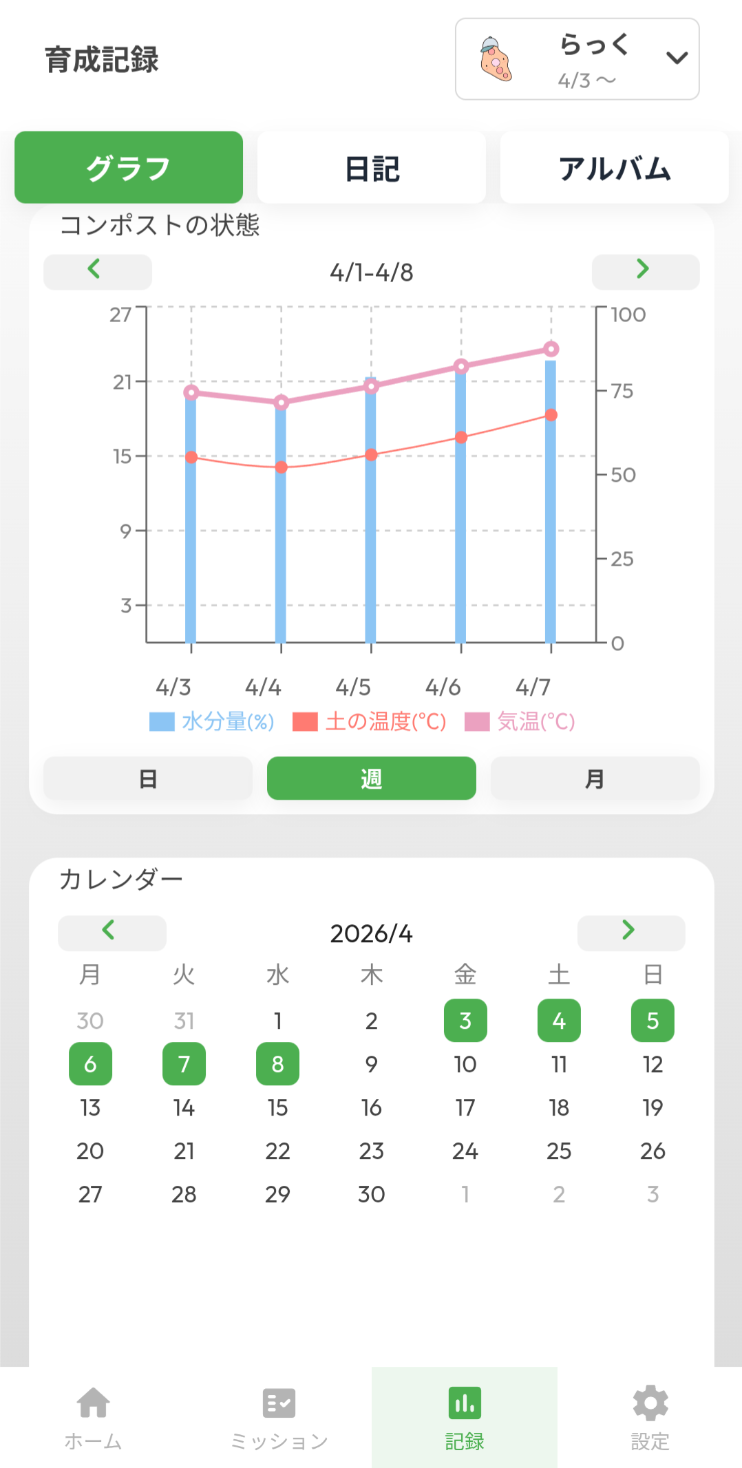 コンポスト内部にセンサーを入れ、水分量や温度をリアルタイムで計測。スマホで「今、コンポストに何が必要か」アドバイスを行います。また、コンポストの温度変化や入れた生ごみなどの記録も残すことができます。