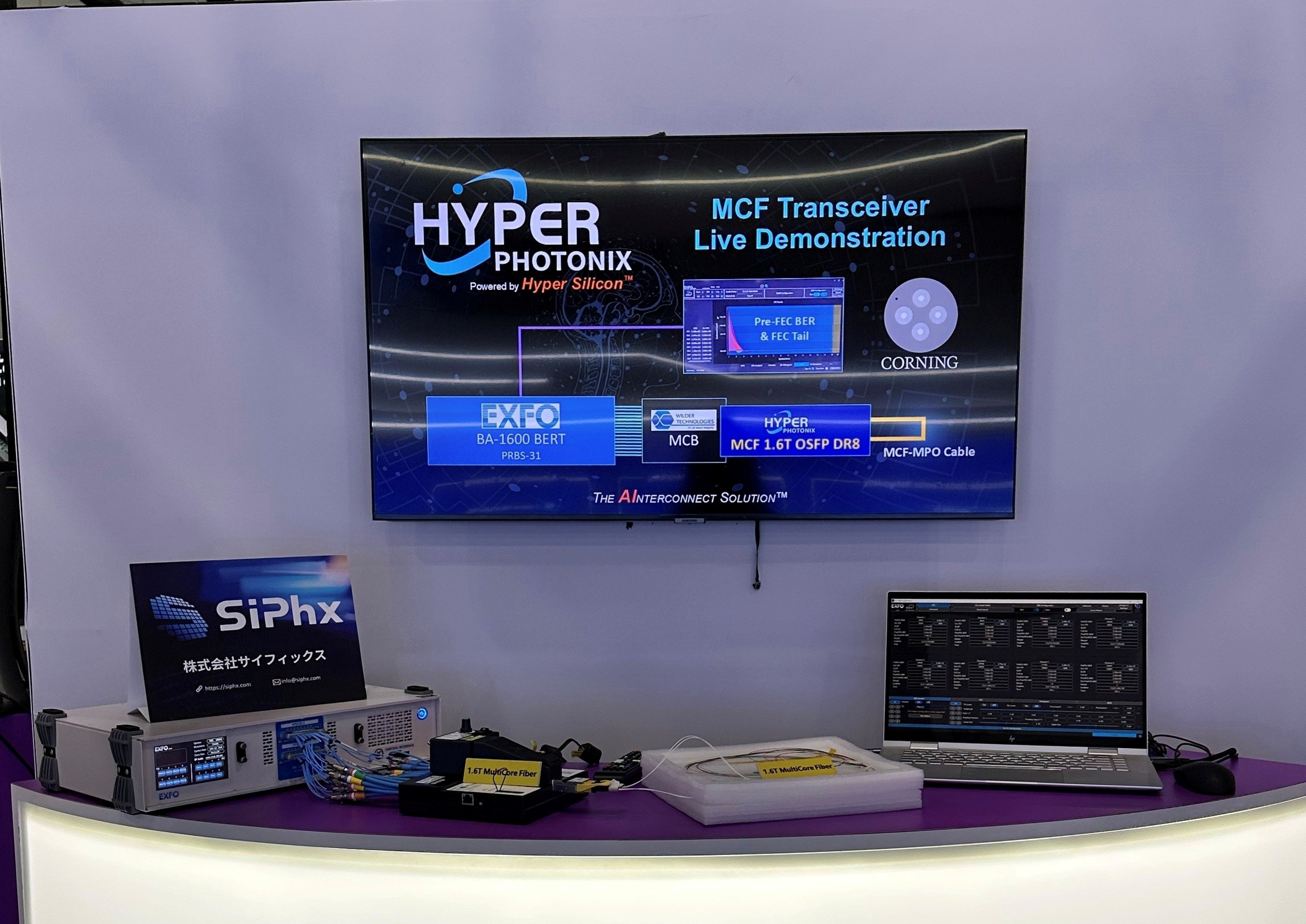 The demonstration combines multicore fiber (MCF) module technology provided by SiPhx Inc., Hyper Silicon™ technology, and Corning® multicore fiber to deliver both high bandwidth and improved cabling efficiency. This approach reduces cable size and weight, simplifies cable management, improves airflow, and streamlines installation, ultimately lowering the total cost of large-scale AI network deployments.