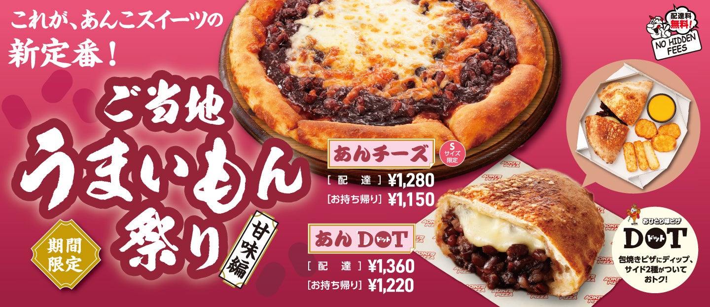さらに、2025年8月8日(金)より期間限定で、この夏開催中の【ご当地うまいもん祭り】に「甘味編」が登場します。「モーニング文化」と「あんこ愛」の街・名古屋から生まれた、たっぷりのあんこととろけるチーズの組み合わせが魅力的な2つのスイーツピザ「あんチーズ」 および 「あんDOT」 をお楽しみいただけます。この機会をお見逃しなく!