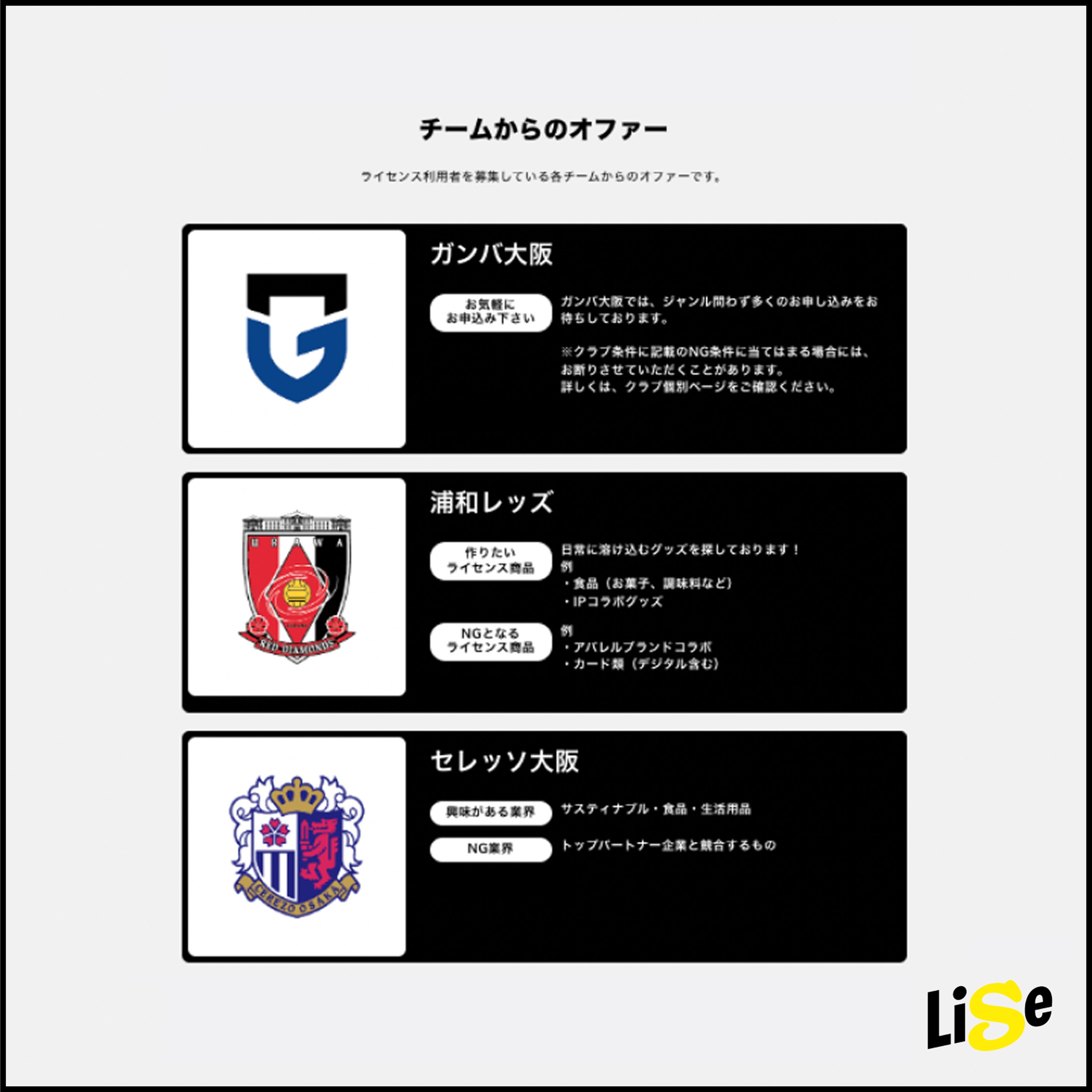 Jリーグ所属の3クラブが参画!スポーツチームとライセンスを利用したい企業を繋ぐ「Lise(ライセ)」がサービス開始