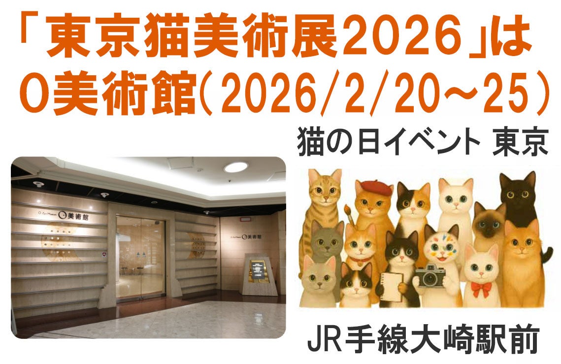 「東京猫美術展」は六本木での盛況を踏まえ、2026年2月17日〜23日に「猫の日イベント」の週に大崎O美術館での開催が決定しています。