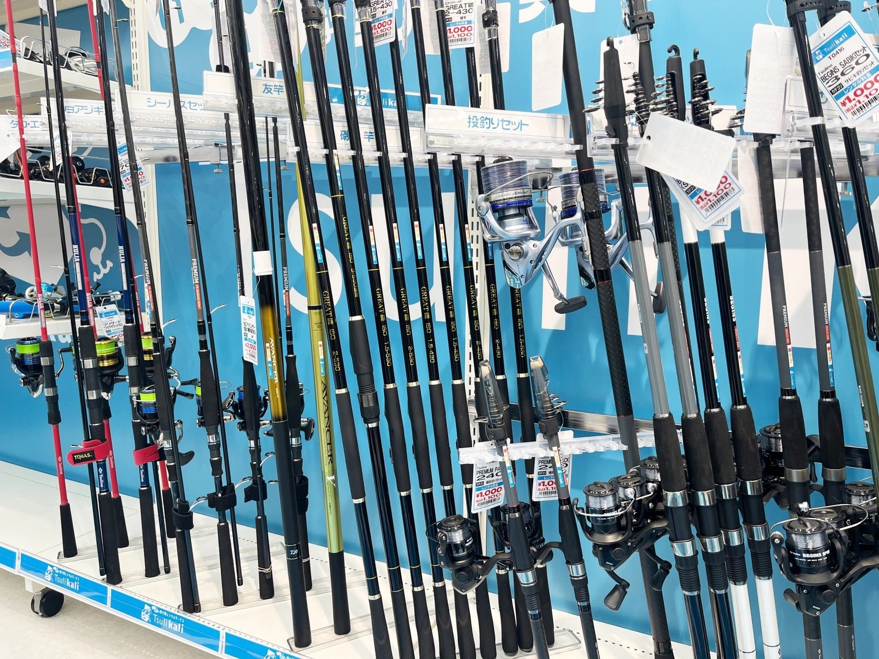 豊田店・三河安城店・津高茶屋店・岐阜店に続き、フレスポ鈴鹿店でも展開。フレスポ鈴鹿店では、グループでの釣行も多い、海上釣堀・船釣りが盛んなエリアであり、お仲間用のレンタル需要も見込まれる為、入門向けの釣竿とリールのセットを充実させます。