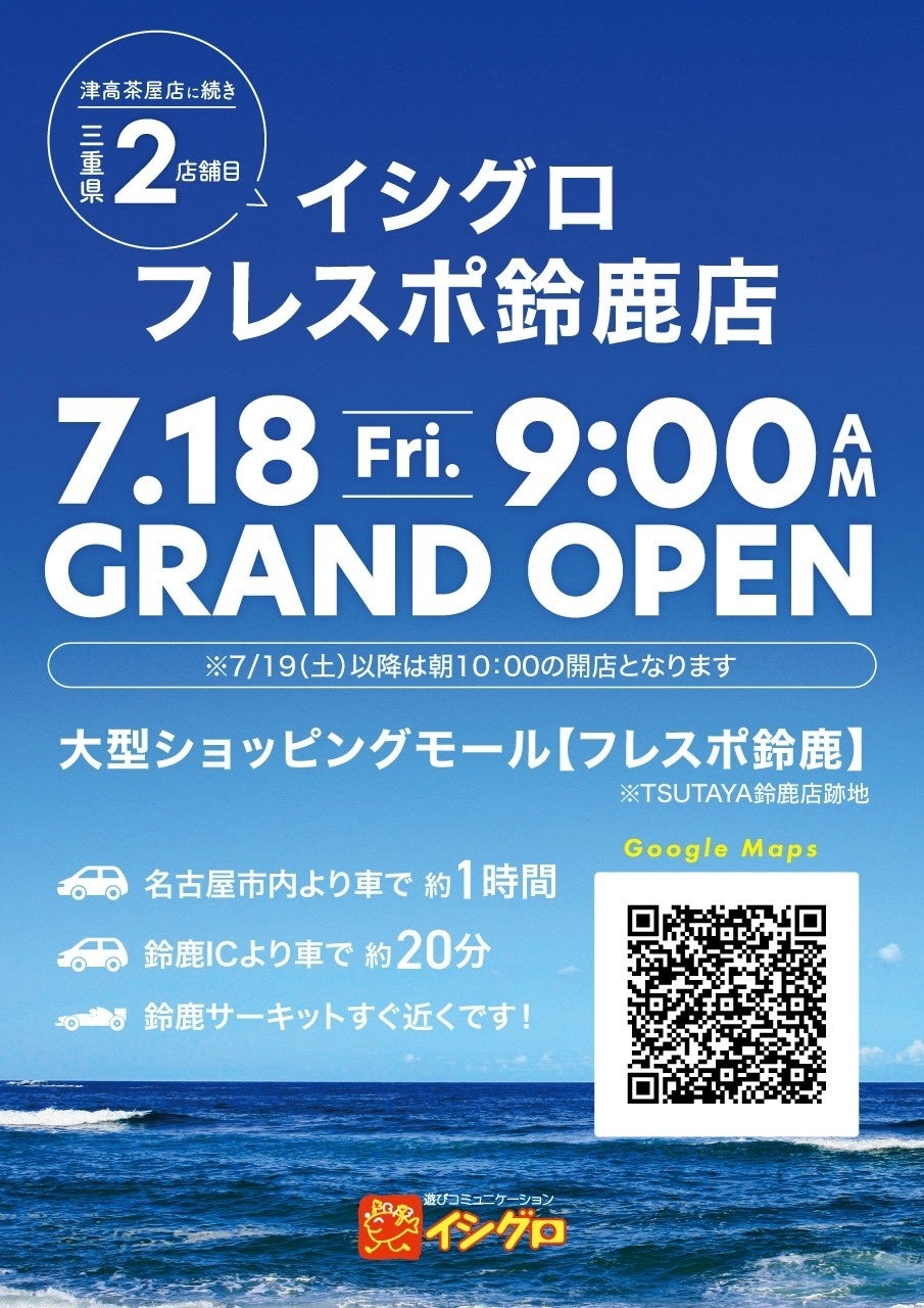 株式会社イシグロ(代表:石黒 陽/静岡県浜松市)は、2022年7月に三重県津市にオープンした、イシグロ津高茶屋店に続き、三重県2店舗目となる、イシグロフレスポ鈴鹿店を大型ショッピングモール【フレスポ鈴鹿】(三重県鈴鹿市道伯町)内に7月18日(金)午前9時に新規オープンいたします。
