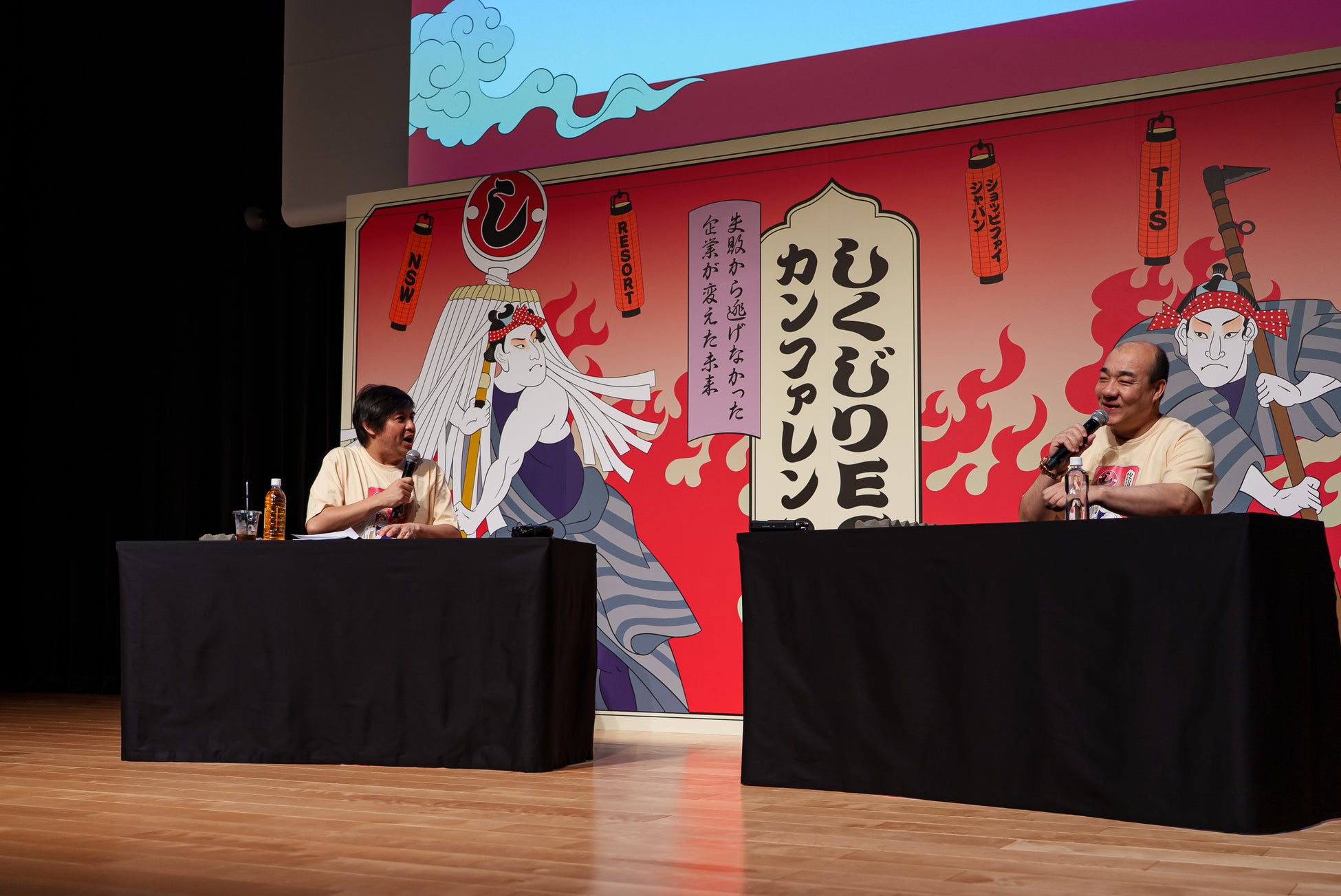 カンファレンスのクライマックスとして、ビジネス動画メディア「ReHacQ」の高橋弘樹氏とエクスコムグローバル株式会社の西村誠司氏による特別対談「転んでも立ち上がるリーダーたちへ──挑戦の流儀」が公開収録されました。