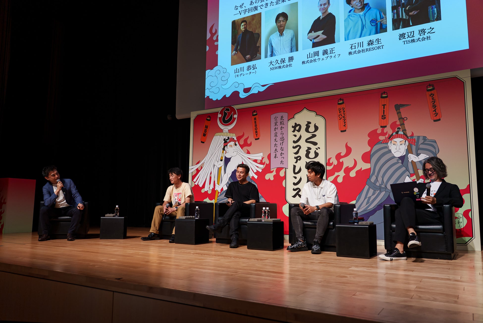 続いて、山川准教授をモデレーターとして登壇4社が参加したパネルディスカッションが行われました。「なぜ、あの会社は立ち直れたのか?──V字回復できた企業とできなかった企業の分岐点」をテーマに、登壇者間で活発な議論が交わされました。