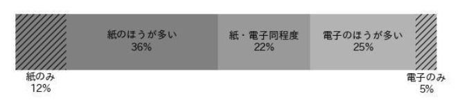 紙100%「紙のみ」、紙90~60%「紙のほうが多い」、紙50%「紙・電子同程度」、紙40~10%「電子の方が多い」、紙0%「電子のみ」とした。