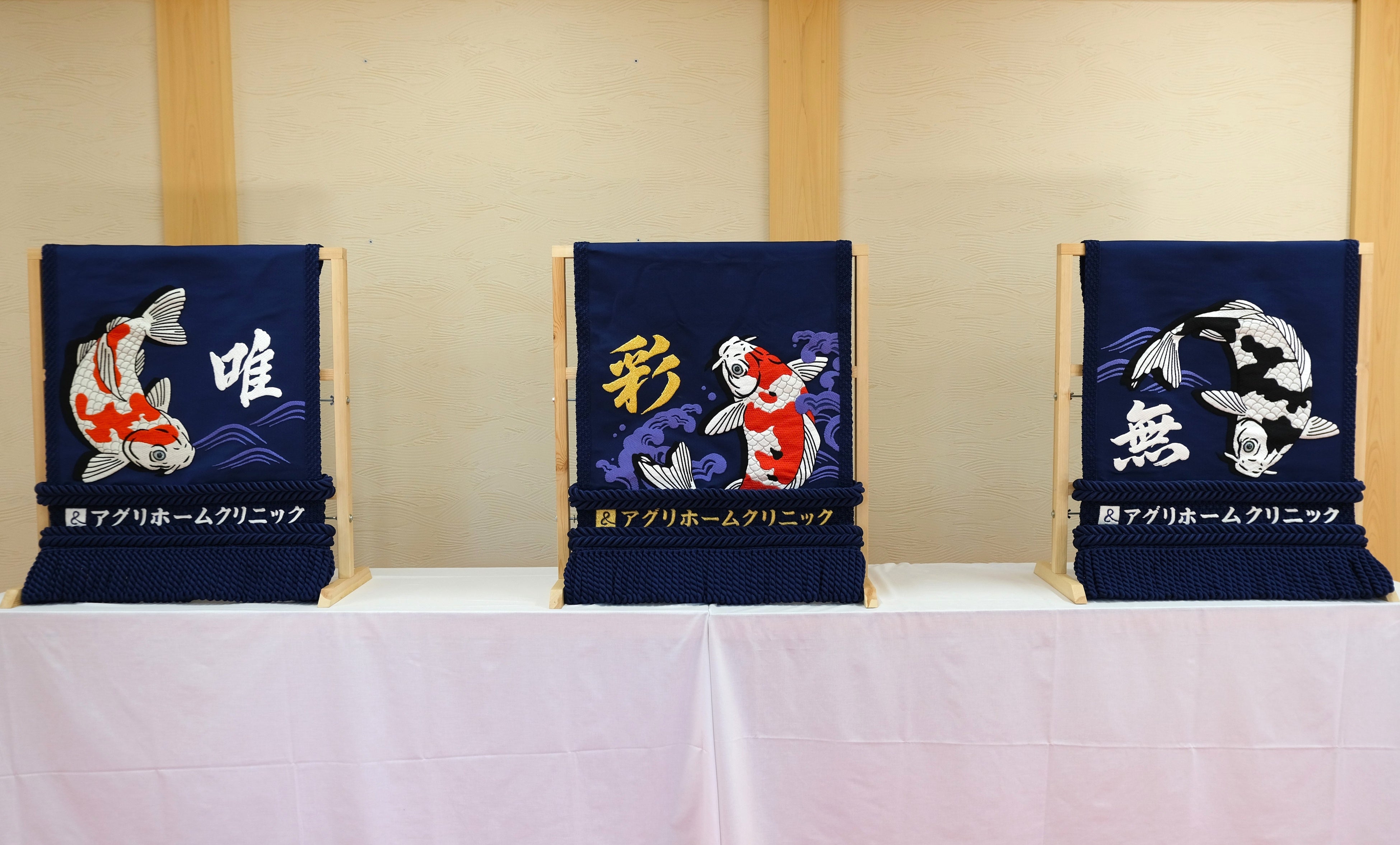 「いつでも。どこでも。だれにでも。」の理念のもと、24時間365日地域医療に挑戦し続ける私たちにとって、滝を登り続ける鯉の姿は、まさに大の里関の不屈の精神と重なります。そして、その姿が多くの人々に勇気と彩りを与え続けてほしいという願いを込めています。