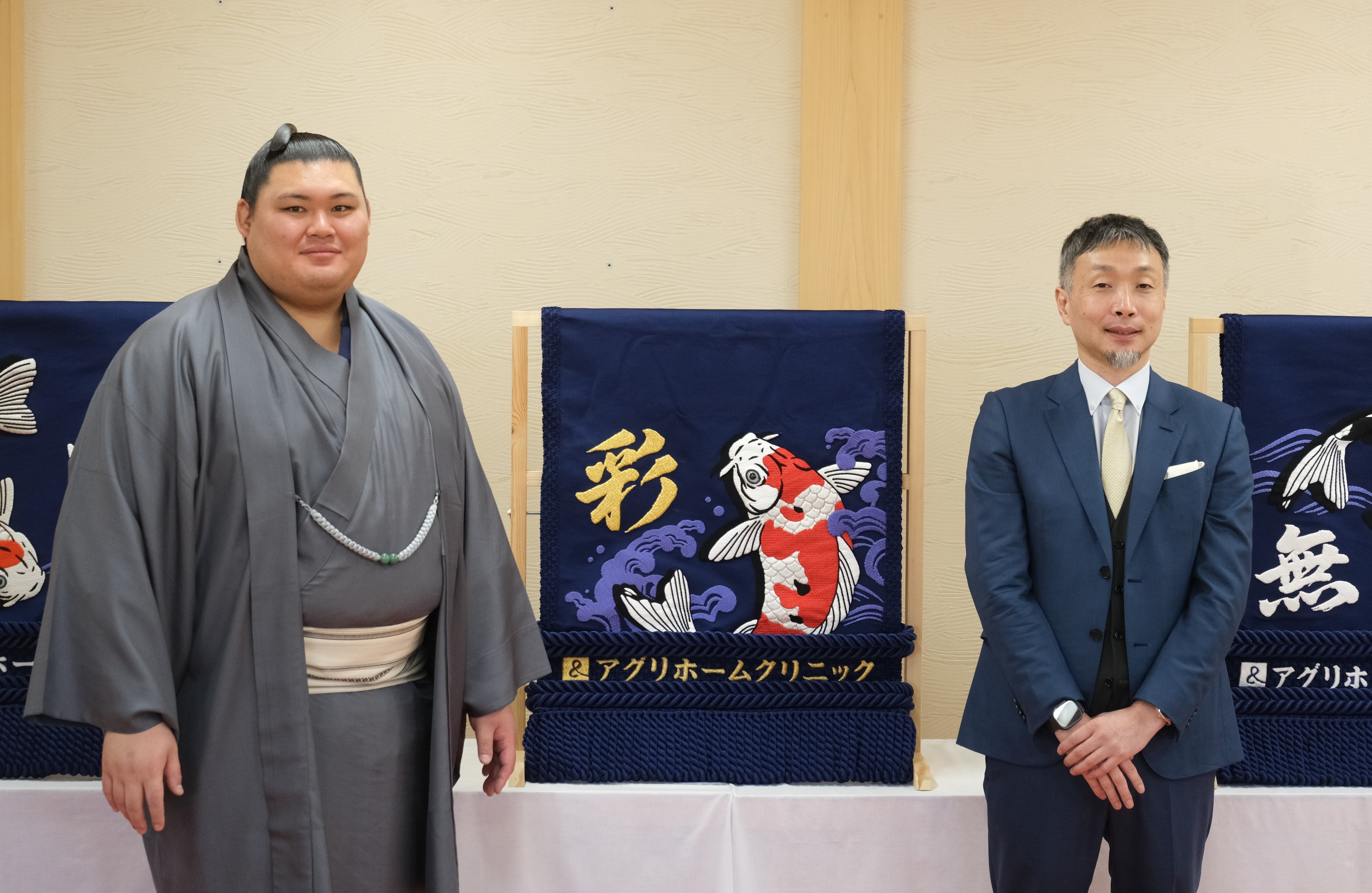 大の里関が相撲留学をされていた新潟県糸魚川市(旧能生町)は、医療法人AGRIEの創業者生誕の地でもあり、同じ中学校の先輩後輩という縁がございます。また、茨城県に本社を構える当法人にとって、同じく茨城県で相撲部屋を設立し、地域に根差した活動を続けておられる二所ノ関部屋を応援することは、自然な流れでありました。