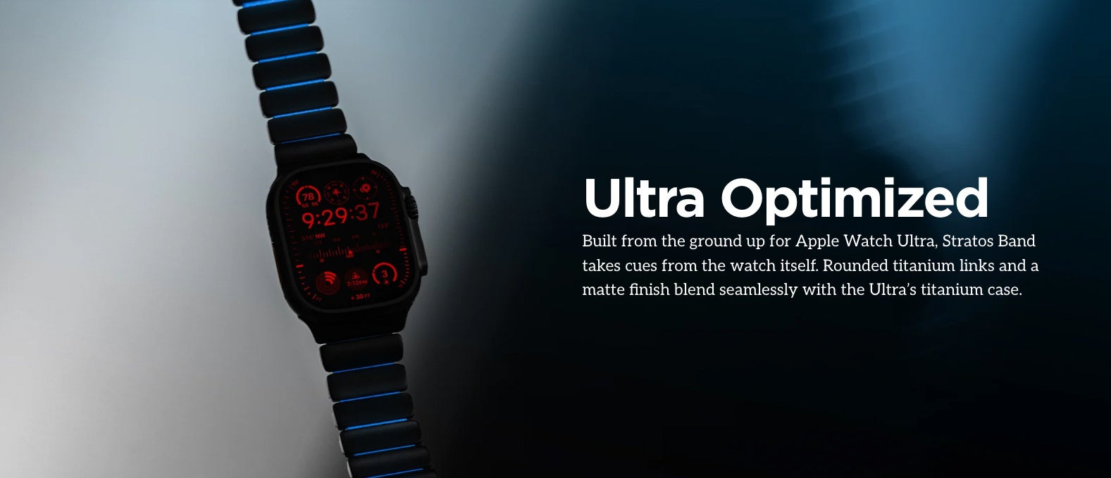 「Stratos Band」は、これまでの常識を超えるべく設計されています。NOMADの人気モデルである「Titanium Band」と「Sport Band」から得た知見を融合し、“金属ブレスレットのように見えて、パフォーマンスバンドのように着け心地が良い” という理想を実現しました。