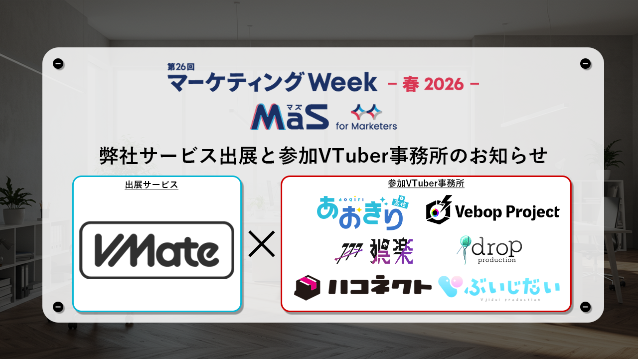 VMateの多彩な機能のご紹介および、VTuberを起用したPRに関する直接のご相談にお応えするため、「マーケティングWeek2026春」に出展いたします。