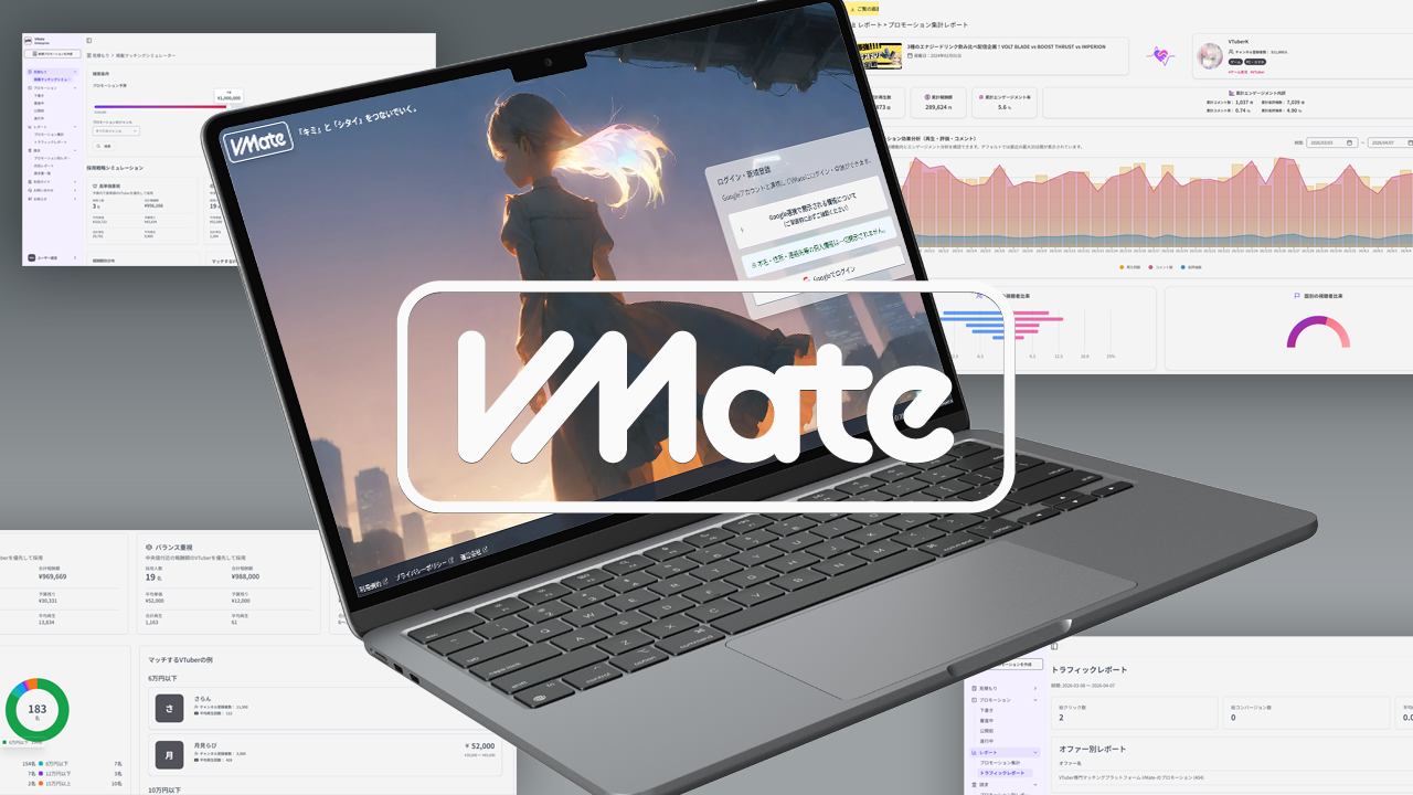 ブースでは、VMate Influencers、分析・サポート機能、プロダクション機能など、VMateの主な最新アップデートをご紹介いたします。実際の画面を交えながら、企業と事務所の案件運用をどのように支援するのかをご案内します。