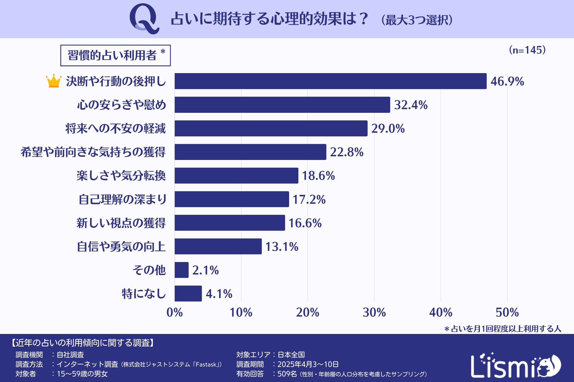 4.占いの習慣的利用者の46.9%が「決断や行動の後押し」を期待