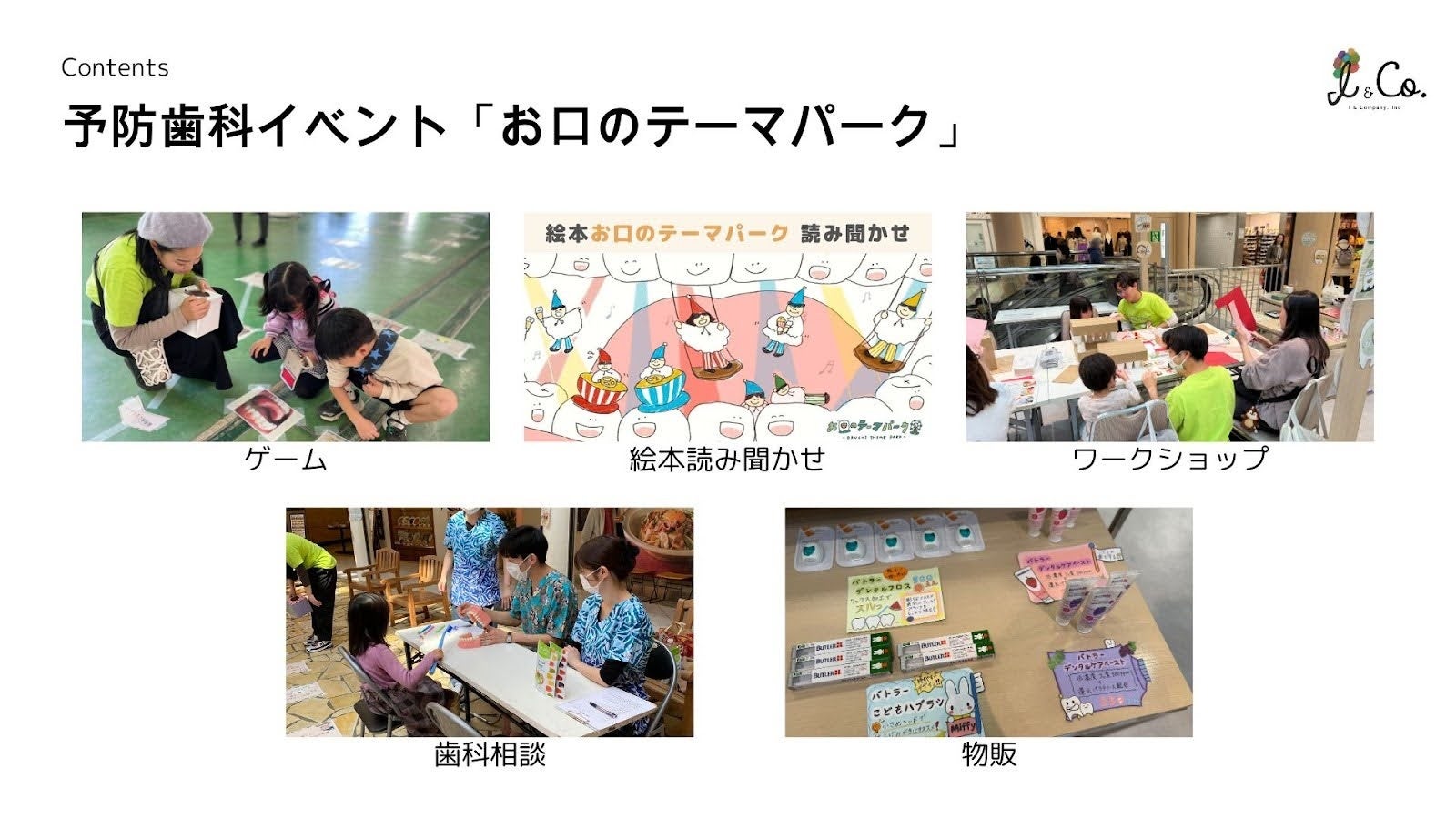 I&Companyは、「すべての人にお口からの健康を届ける社会」の実現を目指し、子どもたちが遊びを通じて楽しく、主体的にお口の健康を学び、家族や地域と一緒に行動変容につなげていくためのコミュニティ型ヘルスプロモーションとして「お口のテーマパーク」を提供しています。